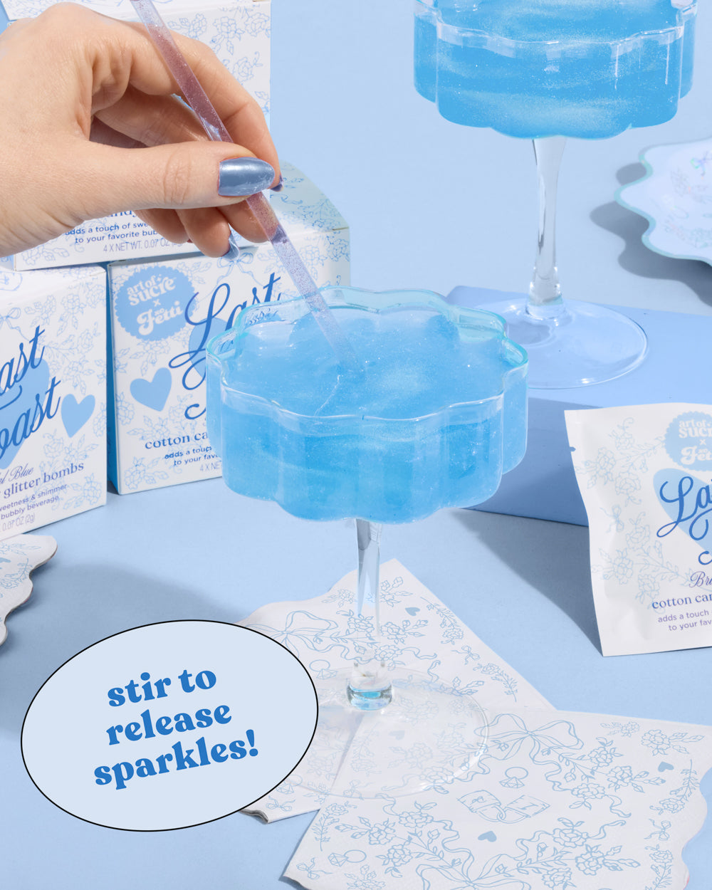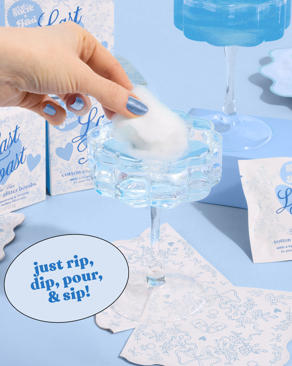We teamed up with our friends at Art of Sucre to create the brightest and sparkliest cocktail accessory we could think of. Ready for your last toast? This pack of 4 cotton candy glitter bombs will add some instant glitter + sweetness to your favorite bev.