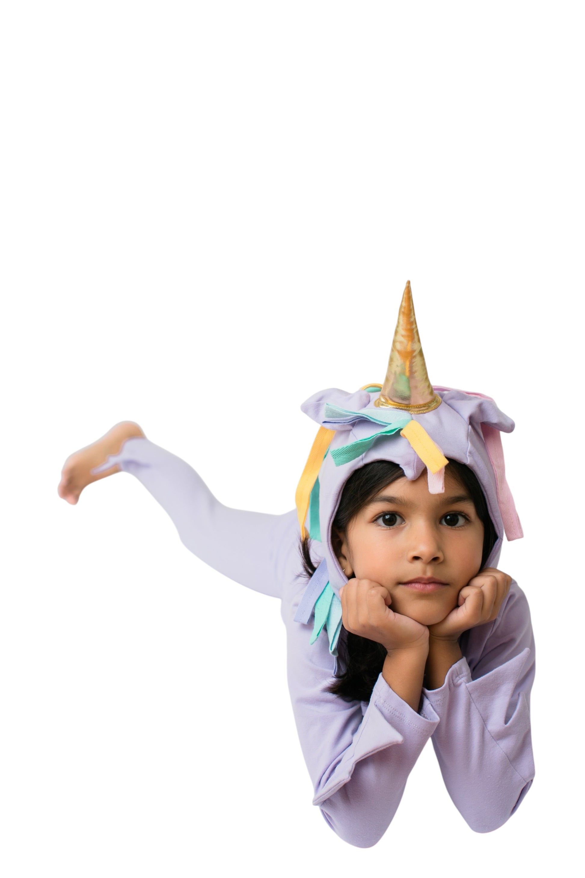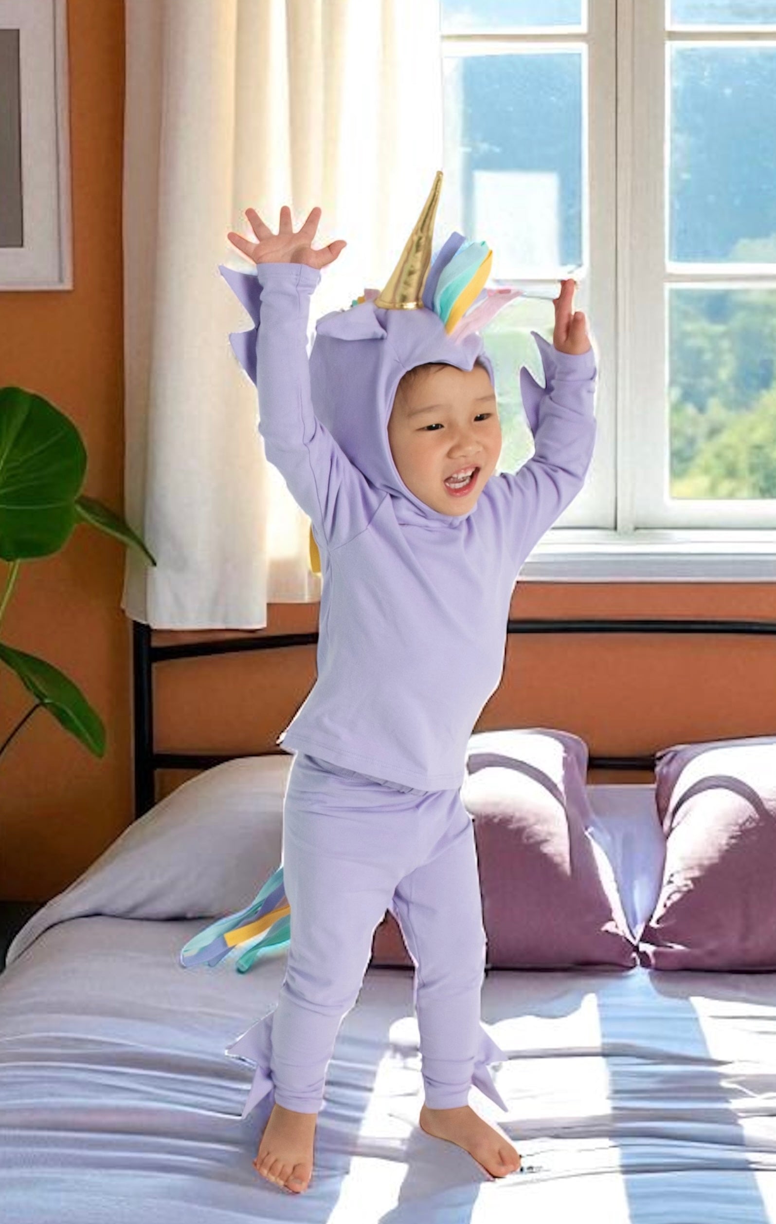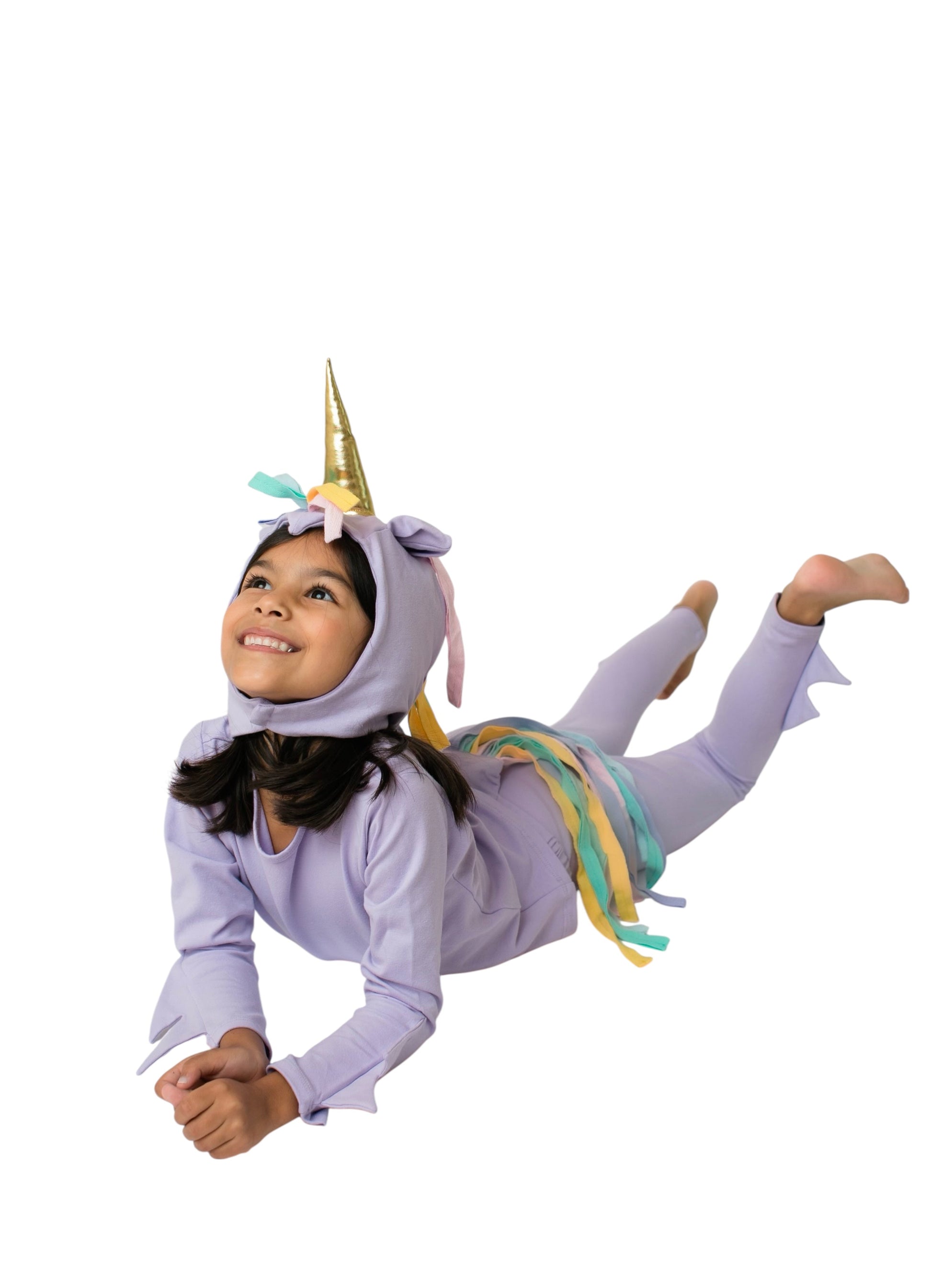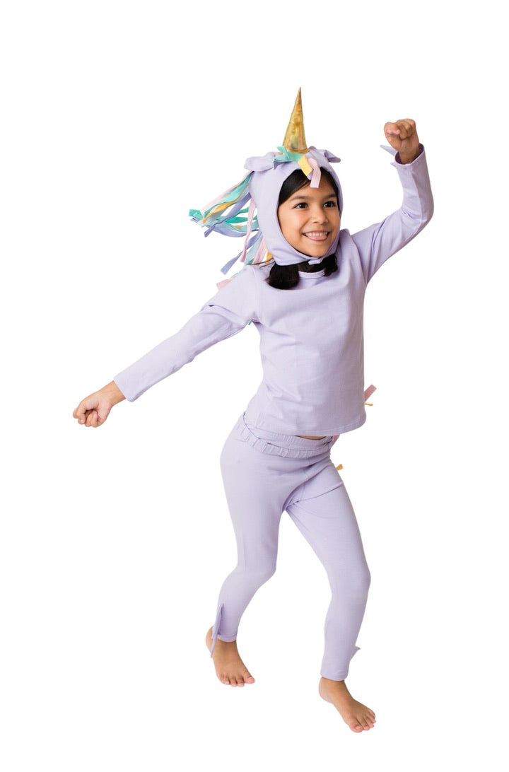 Our favorite unicorn pajamas in a gorgeous, soft lavender with pastel rainbow hair. This fun, cozy and sustainable set is the perfect solution to Halloween night- just remove the accessories after trick-or-treating and hop into bed! Each piece is made with the highest quality eco friendly cotton. With soft, stretchy cotton pajamas that move with them and accessories that are easy to take on and off, the transition from playtime to bedtime has never been simpler.