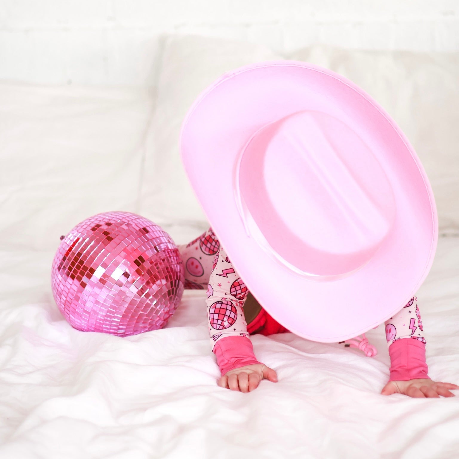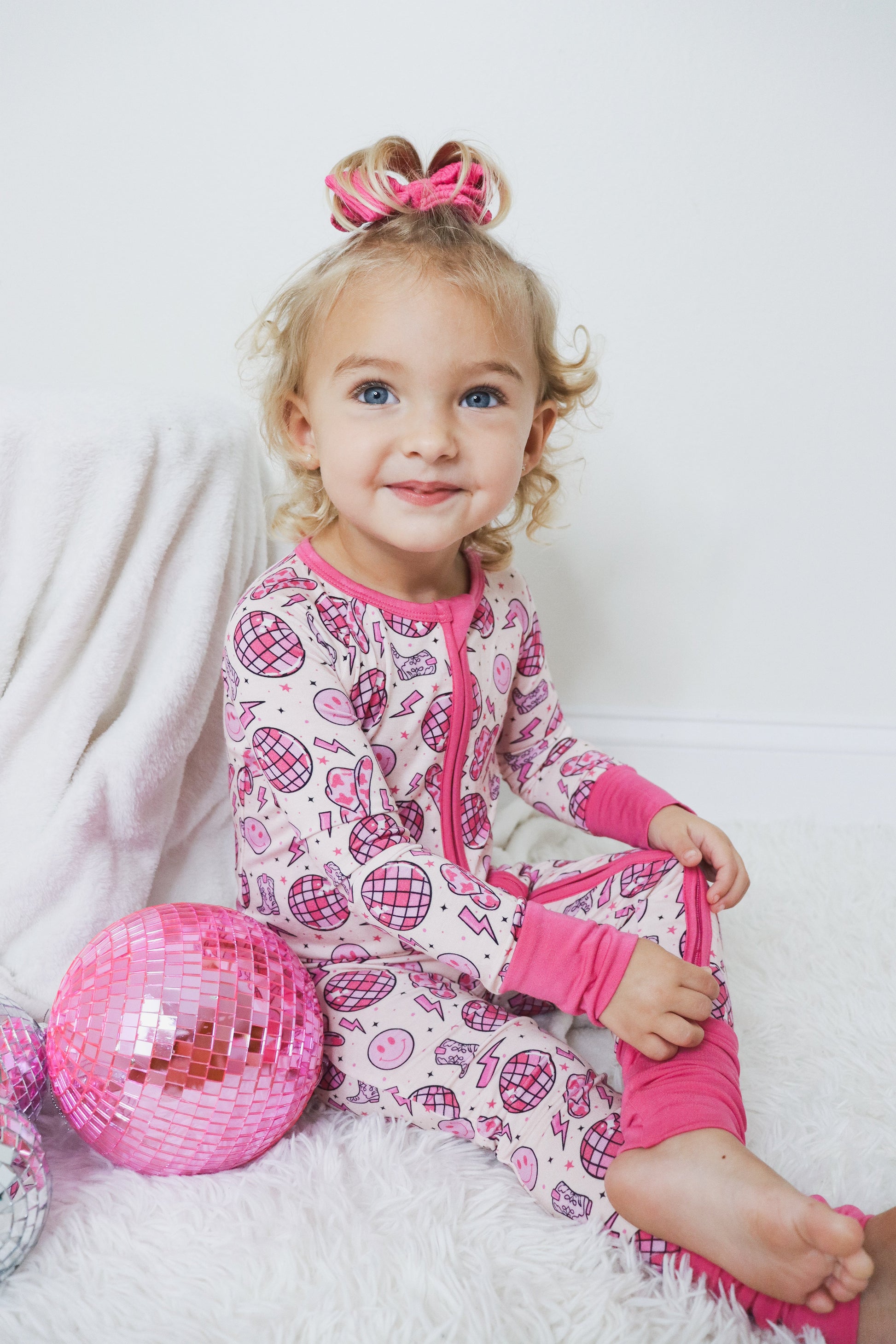 Your little cowgirl is ready for adventure in the LET’S GO GIRLZzz Dream Romper! This all-pink romper brings out the girly girl vibe, complete with playful boots, cowgirl hats, disco balls, smiley faces, and lightning bolts. Made from the softest bamboo viscose, this baby romper is ultra-breathable, ensuring your baby stays cozy and comfy all day long.
