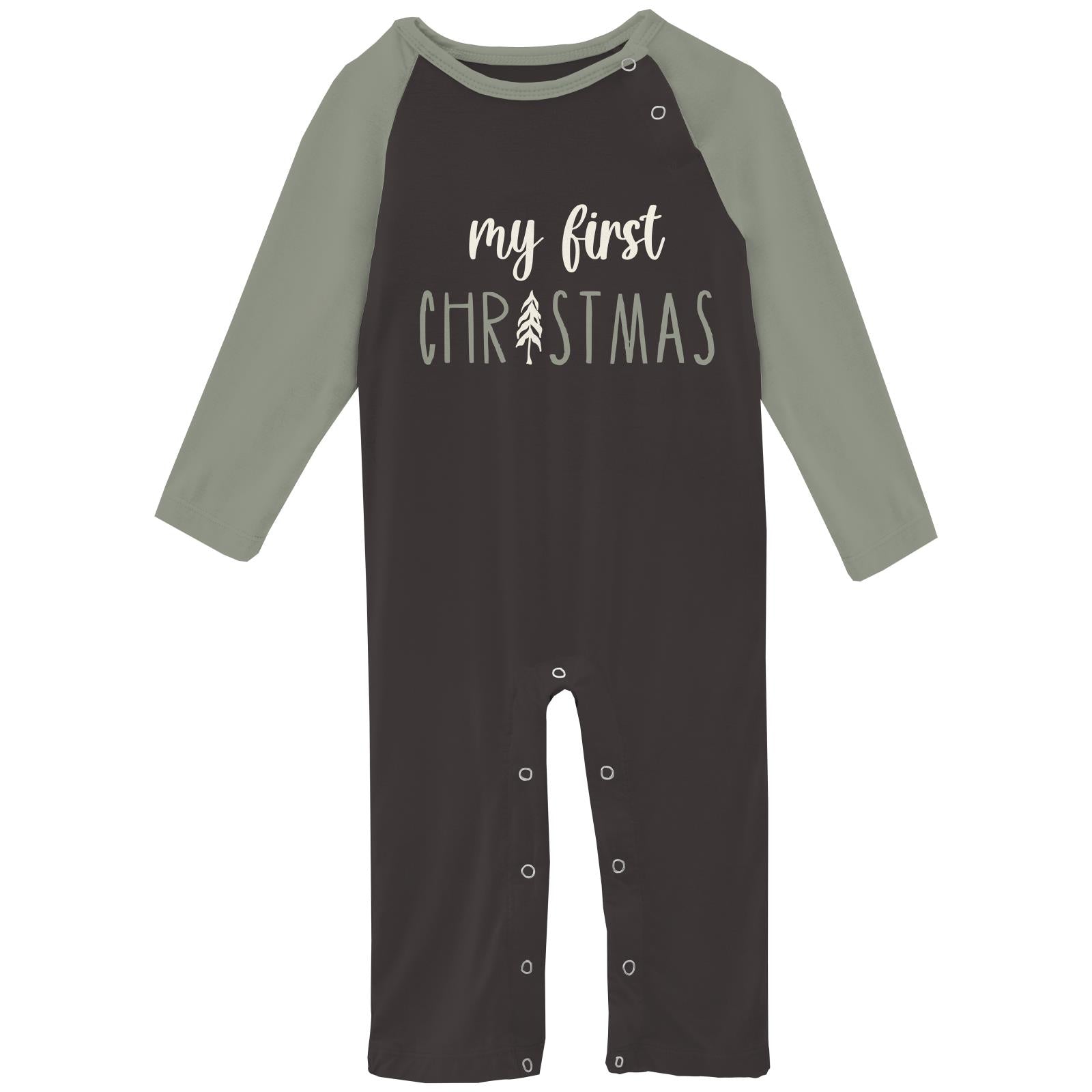 Long Sleeve Graphic Raglan Romper in Midnight My First Christmas