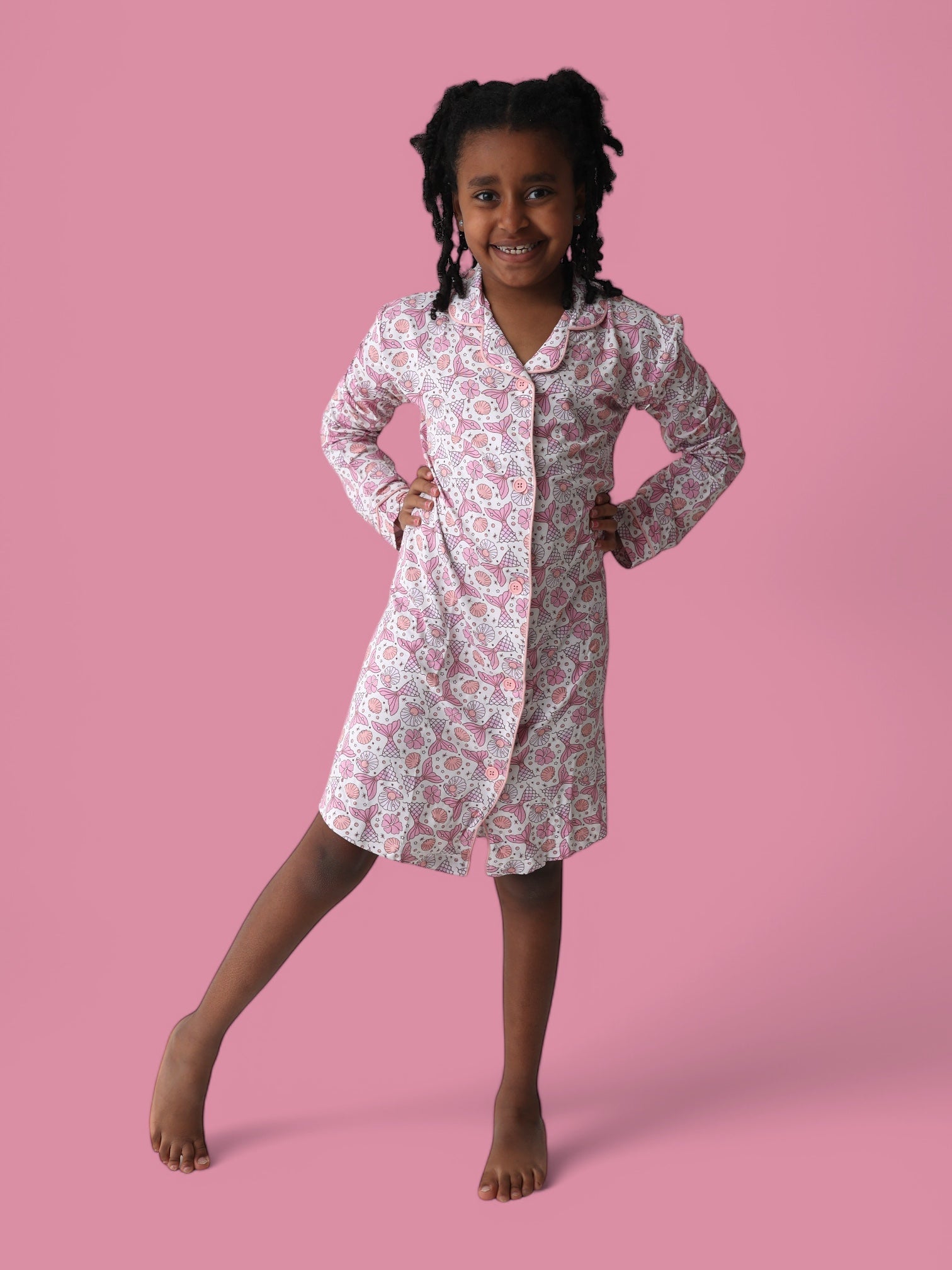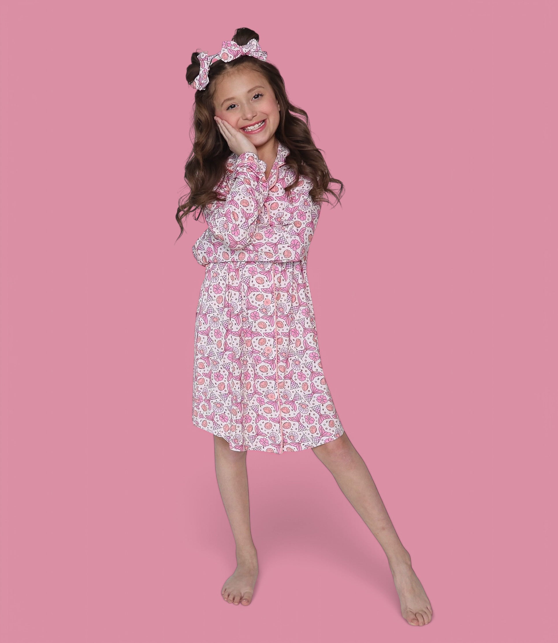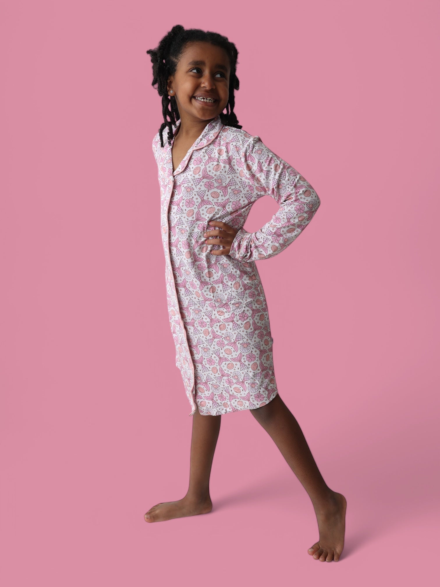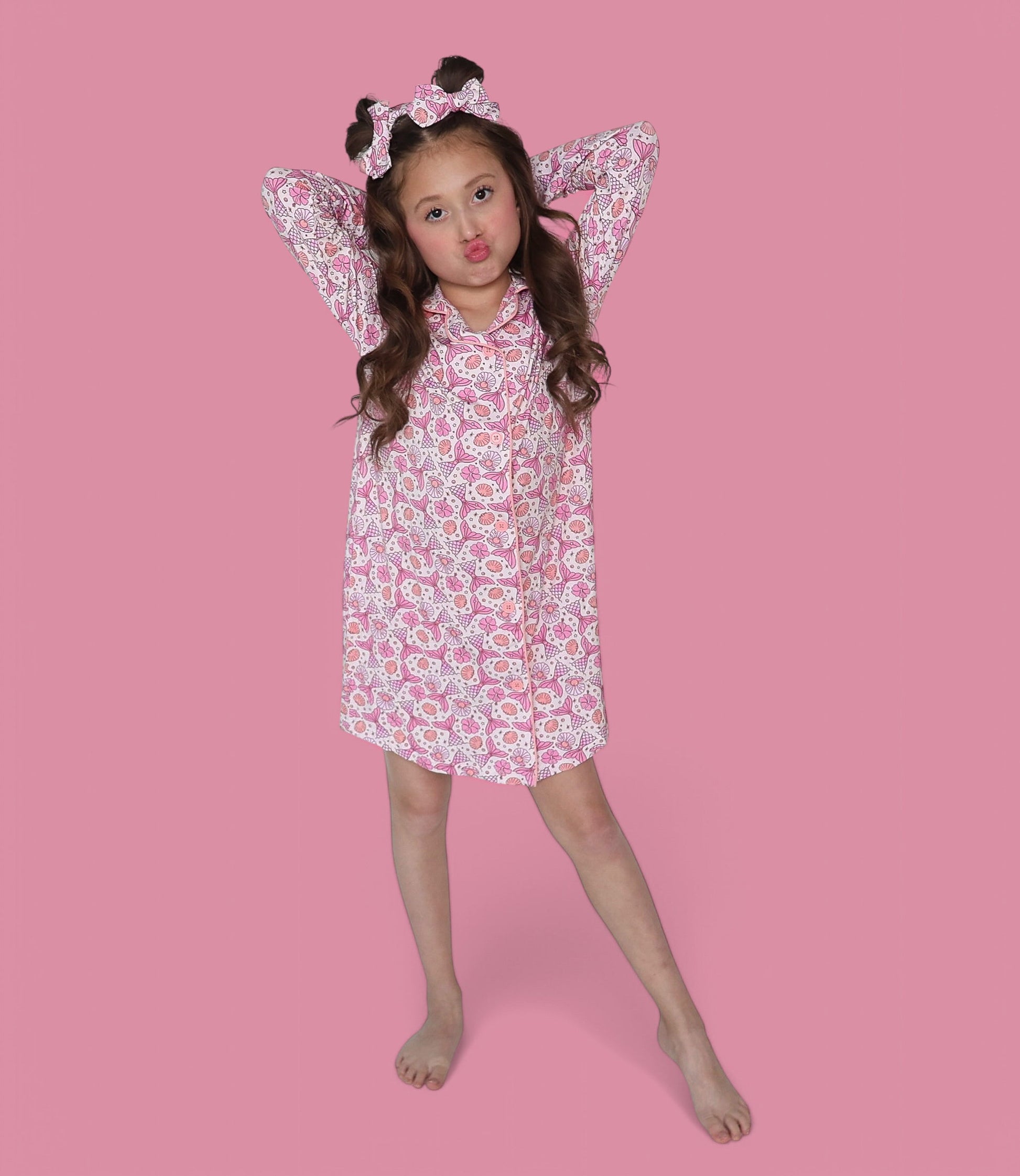 Drift off under the sea in the cozy magic of the Magical Mermaid Girl’s Dream Gown! Featuring twirling mermaid tails, sparkly stars, and sweet seashell treasures in the dreamiest shades of pink, this gown is made for snuggles, twirls, and sweet dreams.