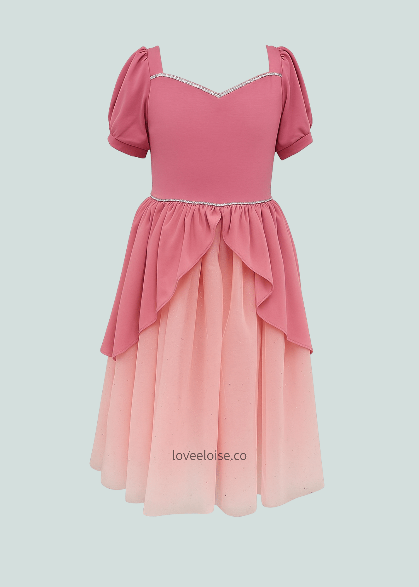 Introducing our enchanting princess dress, designed for little dreamers! The double-layered top is crafted from a soft and stretchy blend of cotton for all-day comfort. The skirt features a cotton lining and layers of airy tulle, adding the perfect touch of elegance and twirl-worthy volume. Perfect for special occasions, dress-up, or everyday magic!