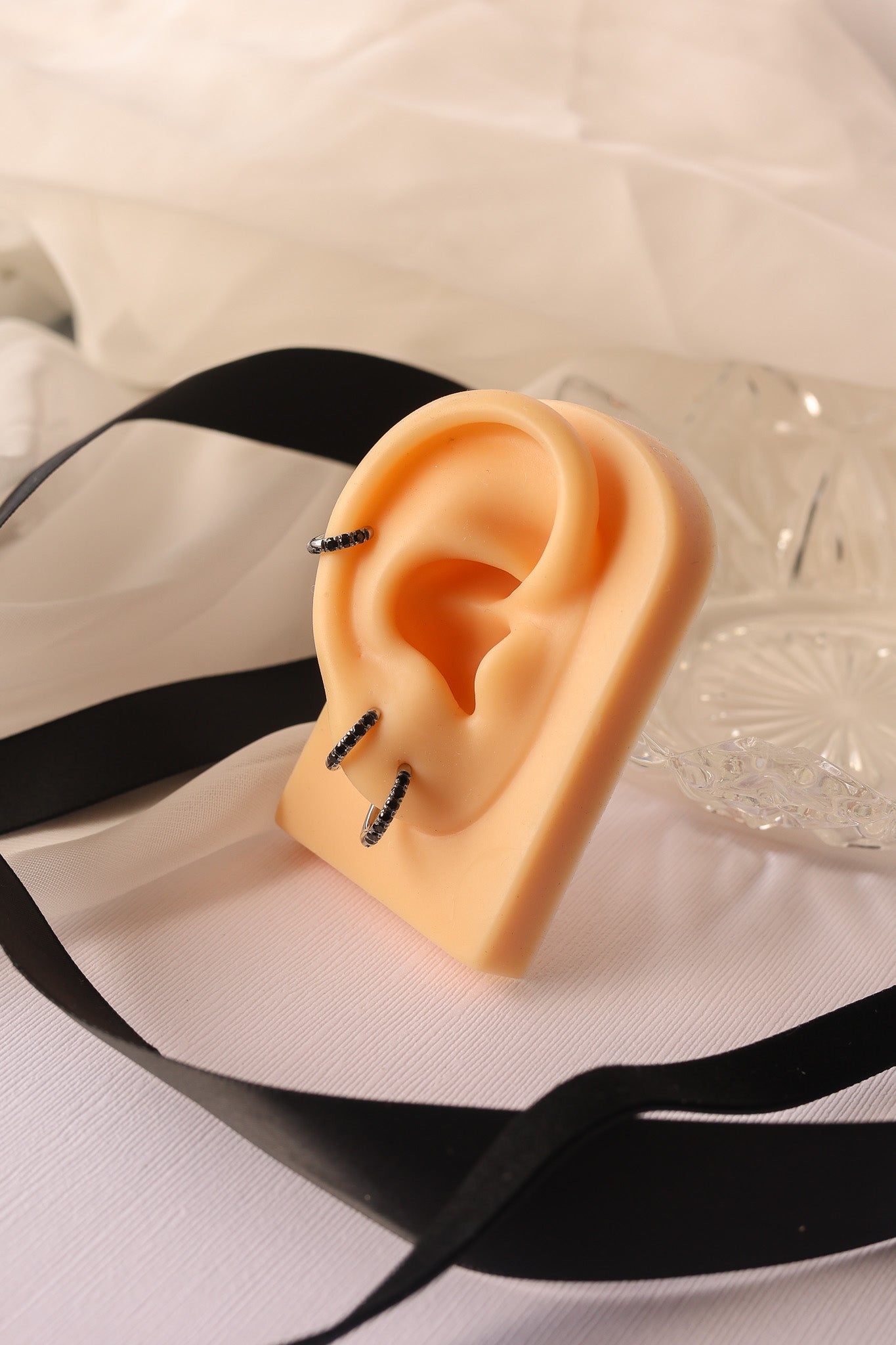 - Black Cubic zircona crystals embedded into each hoop