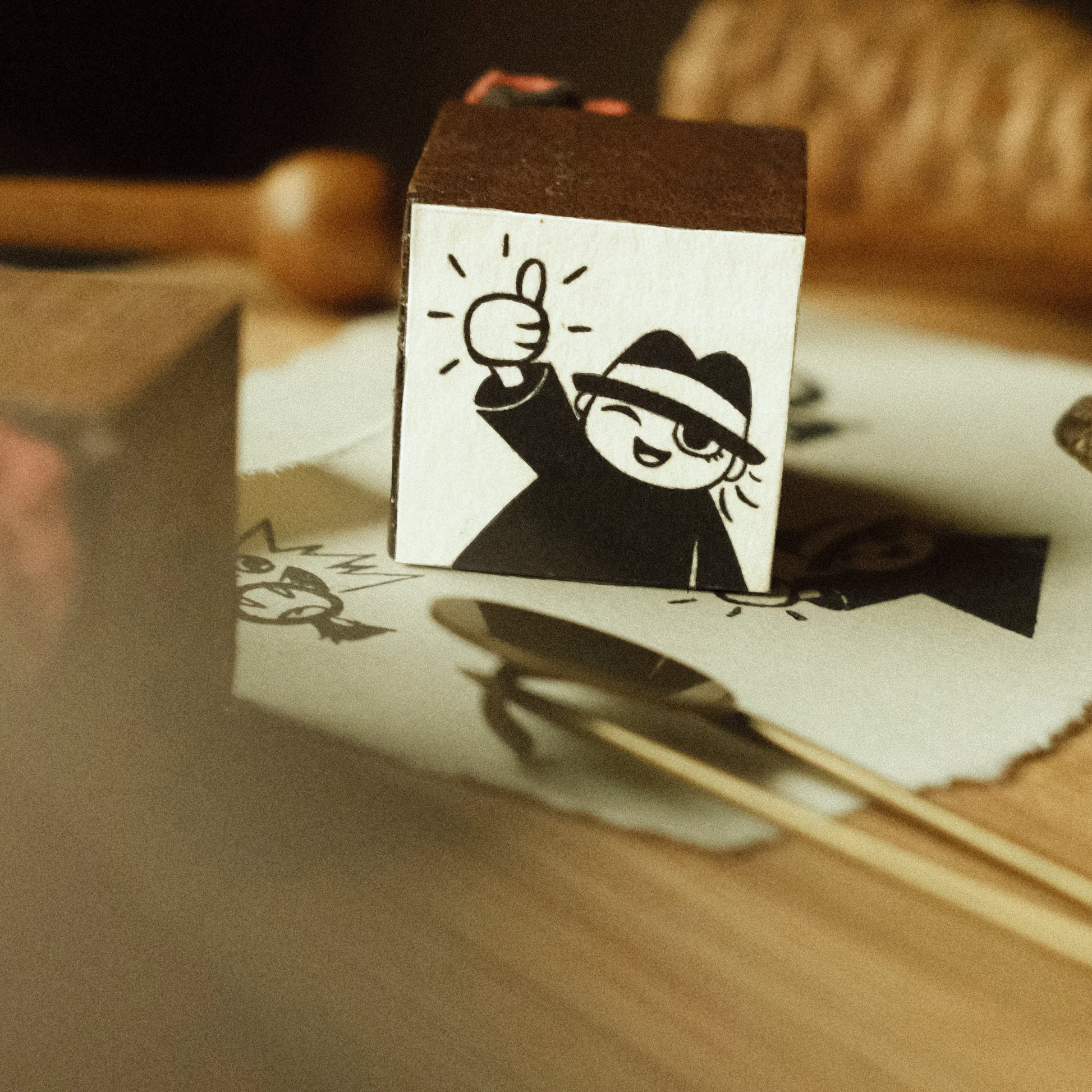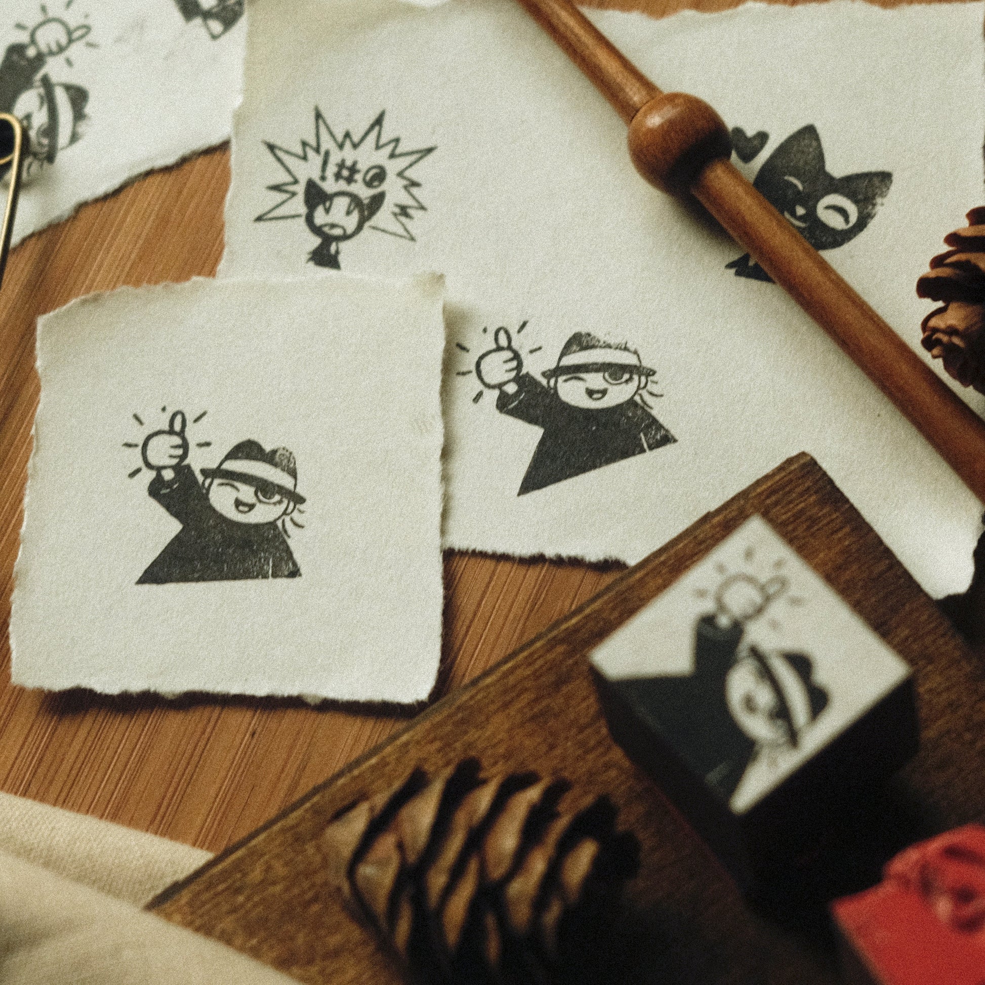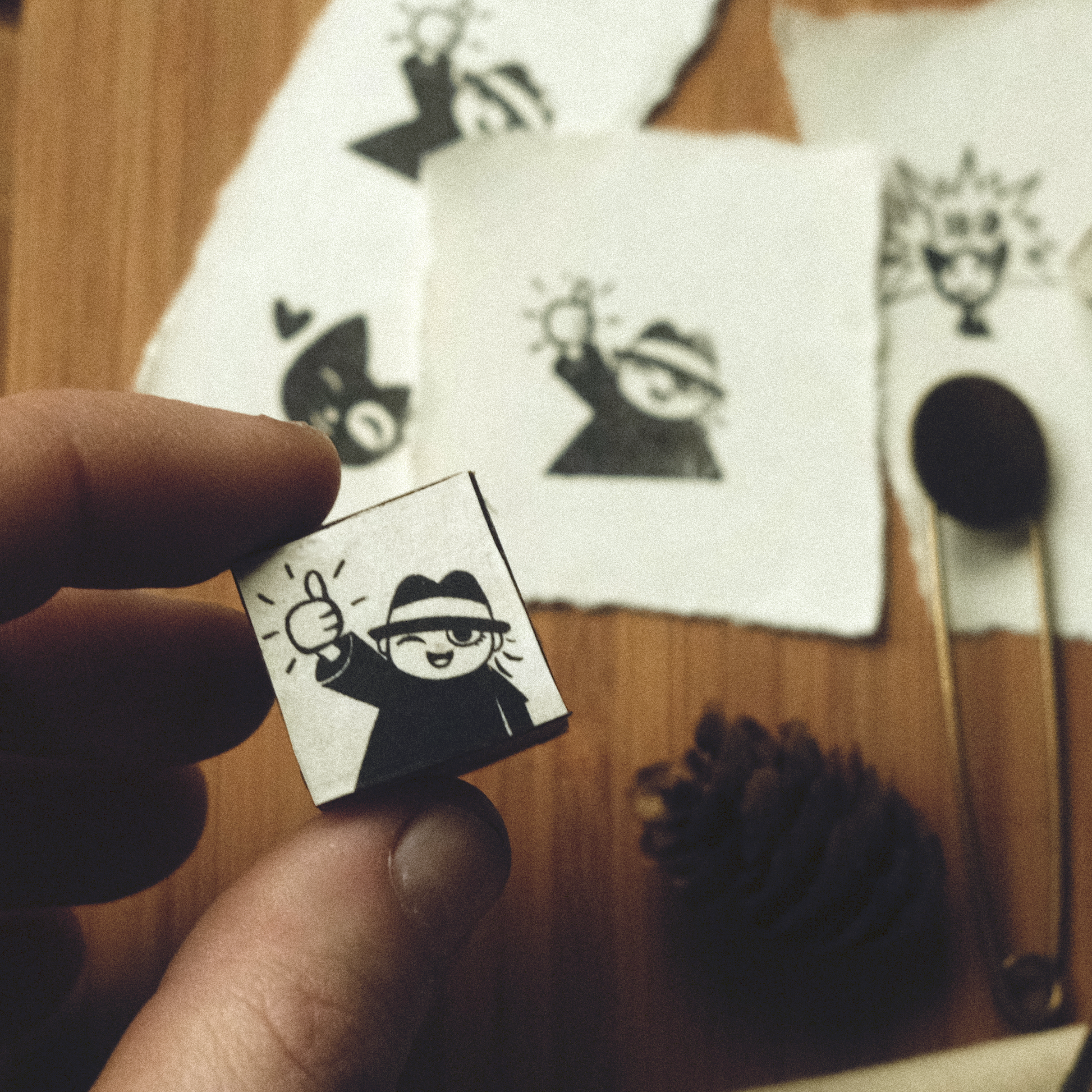 This 3/4” stamp design features a tiny artist giving you a great big thumbs up. This rubber stamp is handmade at my home atelier, and comes with a Collectable Story Card.