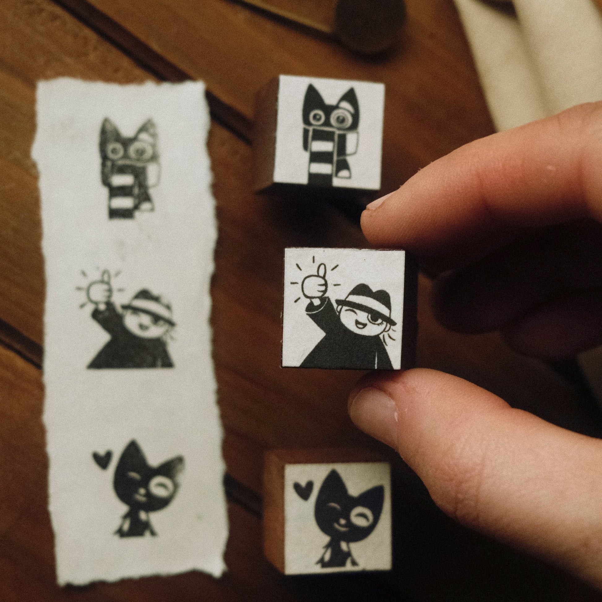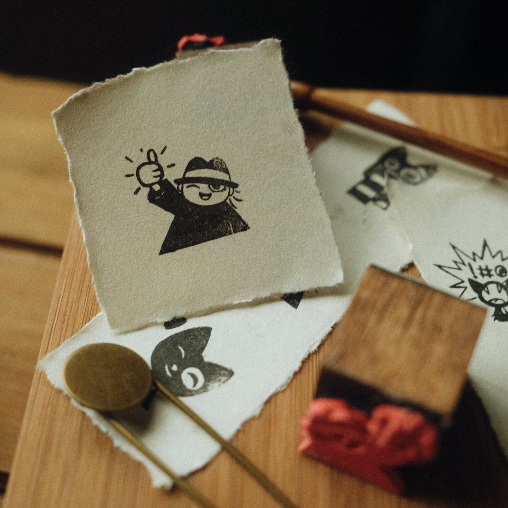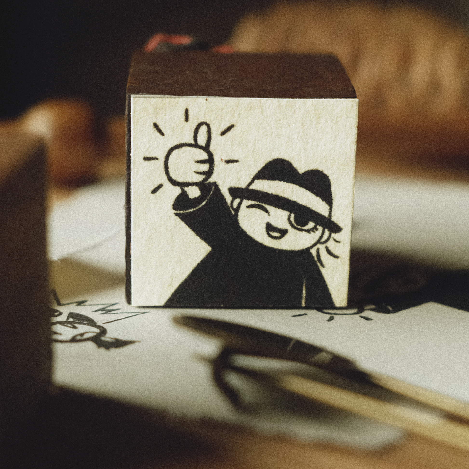 This 3/4” stamp design features a tiny artist giving you a great big thumbs up. This rubber stamp is handmade at my home atelier, and comes with a Collectable Story Card.