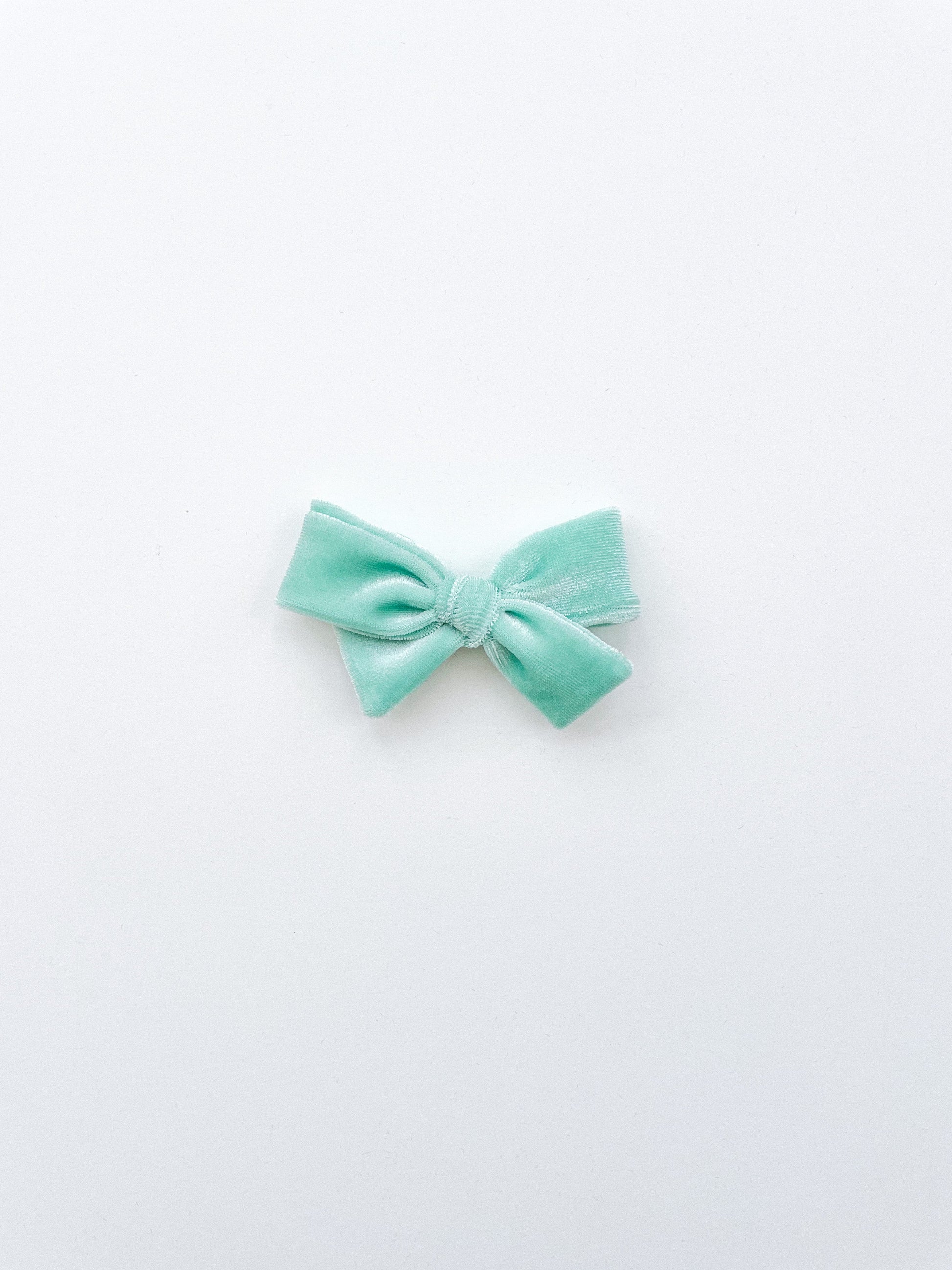 Mint blue/green velvet pinwheel bow.