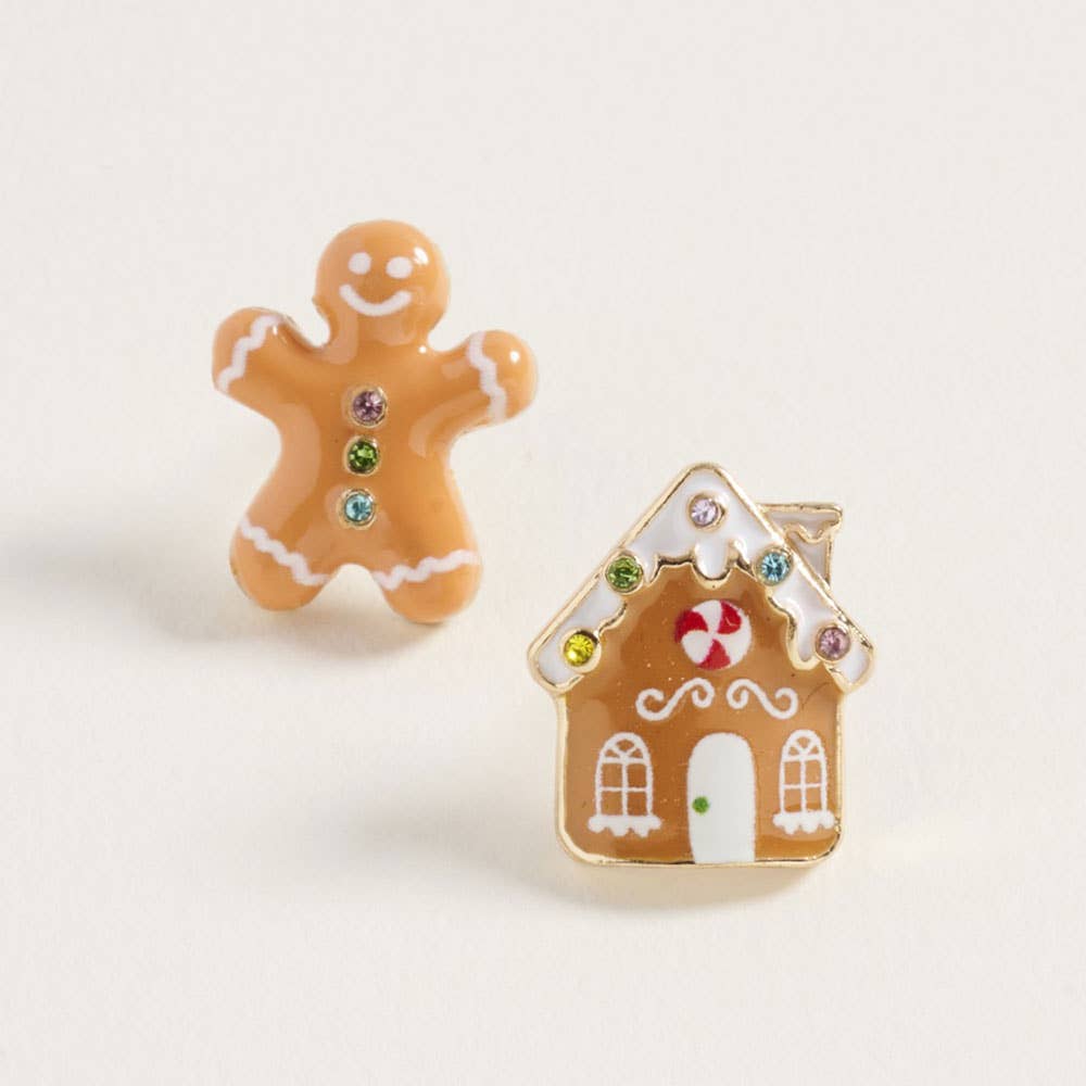 Celebrate the holiday season with charming gingerbread man and house stud earrings. Perfect for festive outfits, Christmas parties, and adding a playful holiday touch to your jewelry collection.