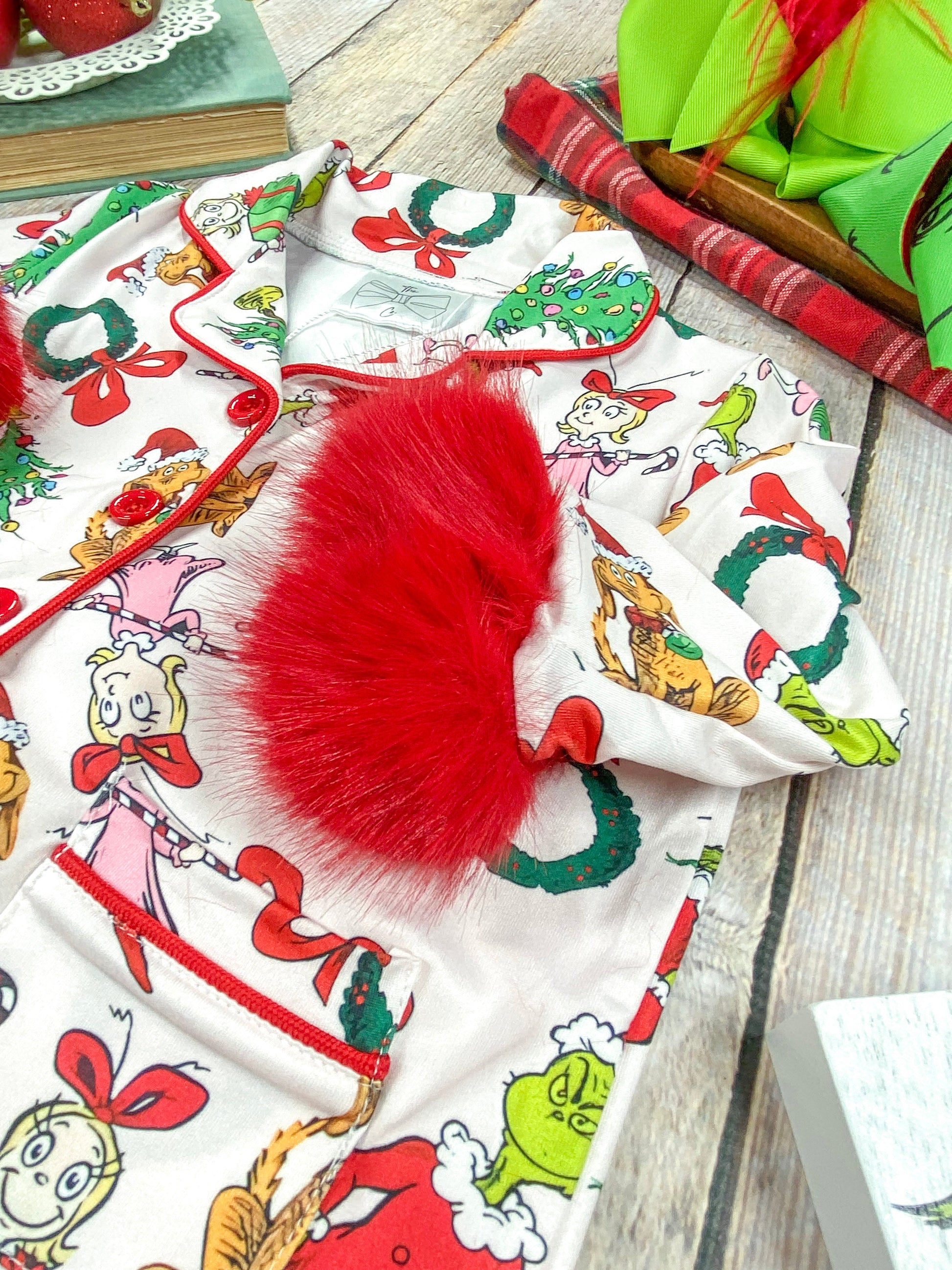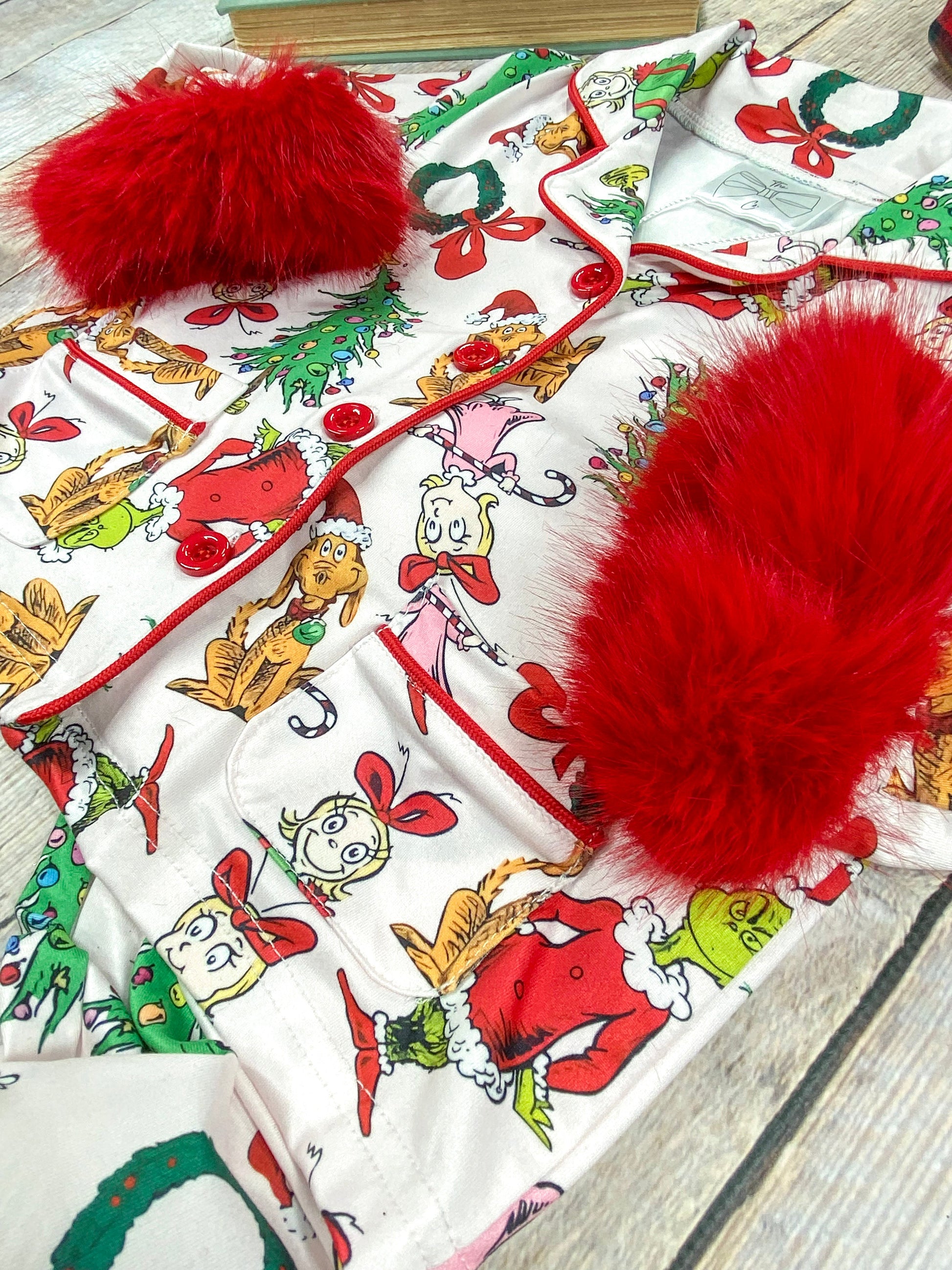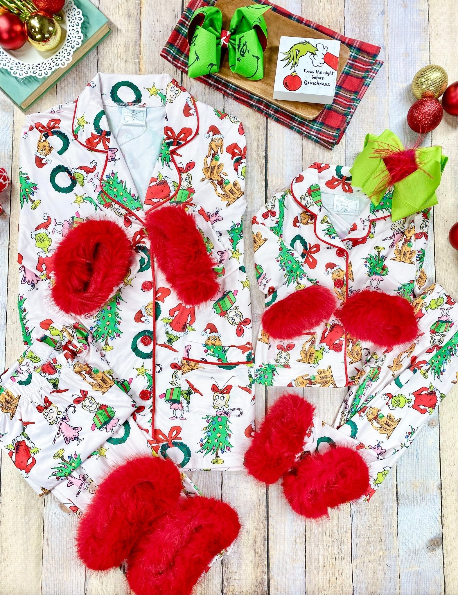 Mommy & Me It's Grinchmas Time Fuzzy Trim PJ'S