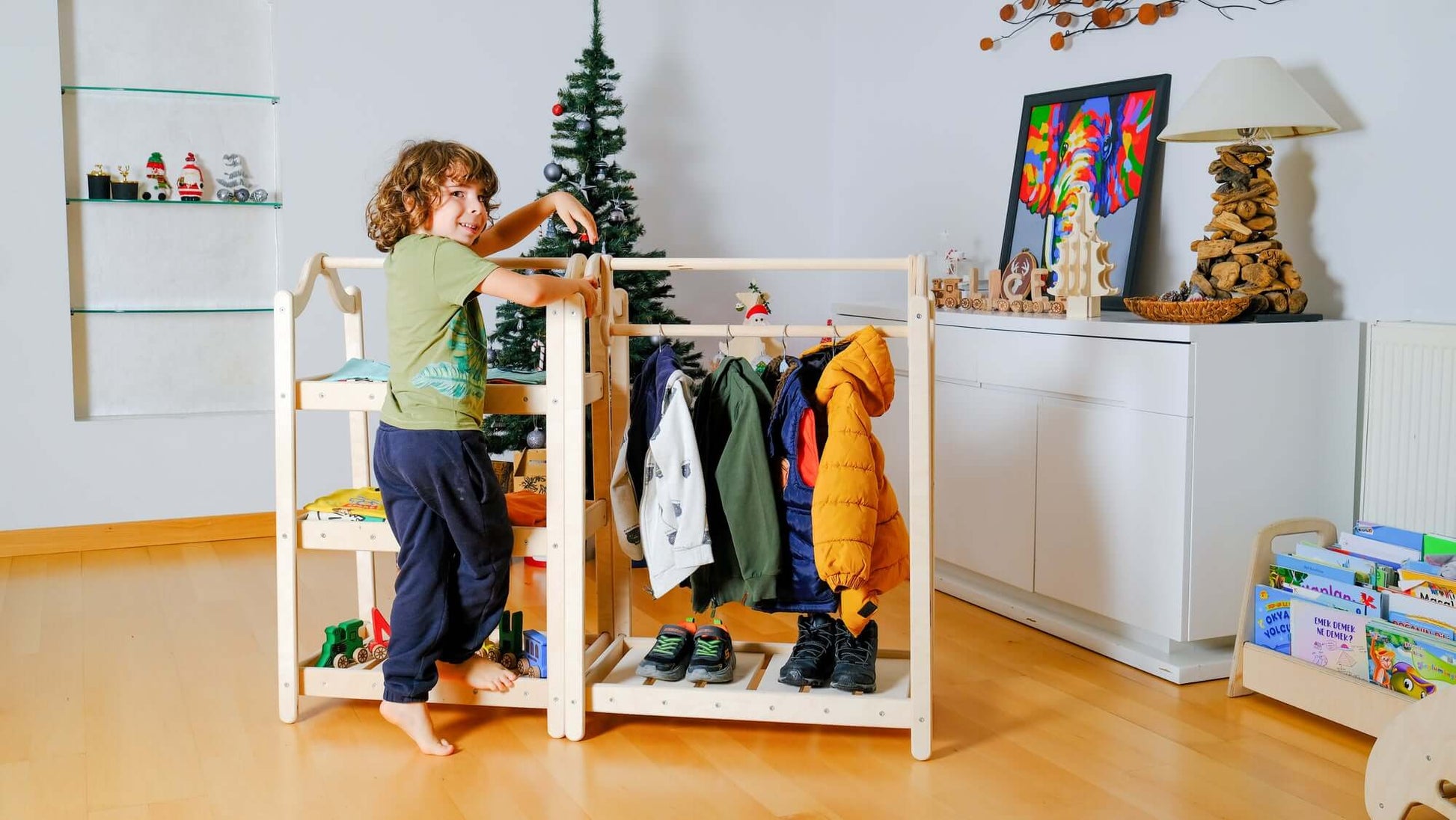 Transform your child's room into an organized and charming haven with our nursery furniture. Elevate the act of dressing into an enjoyable and empowering experience for your little explorer. Order now and observe their budding autonomy. It makes for an ideal Christmas gift for toddlers, kids, and children who appreciate well-organized spaces.