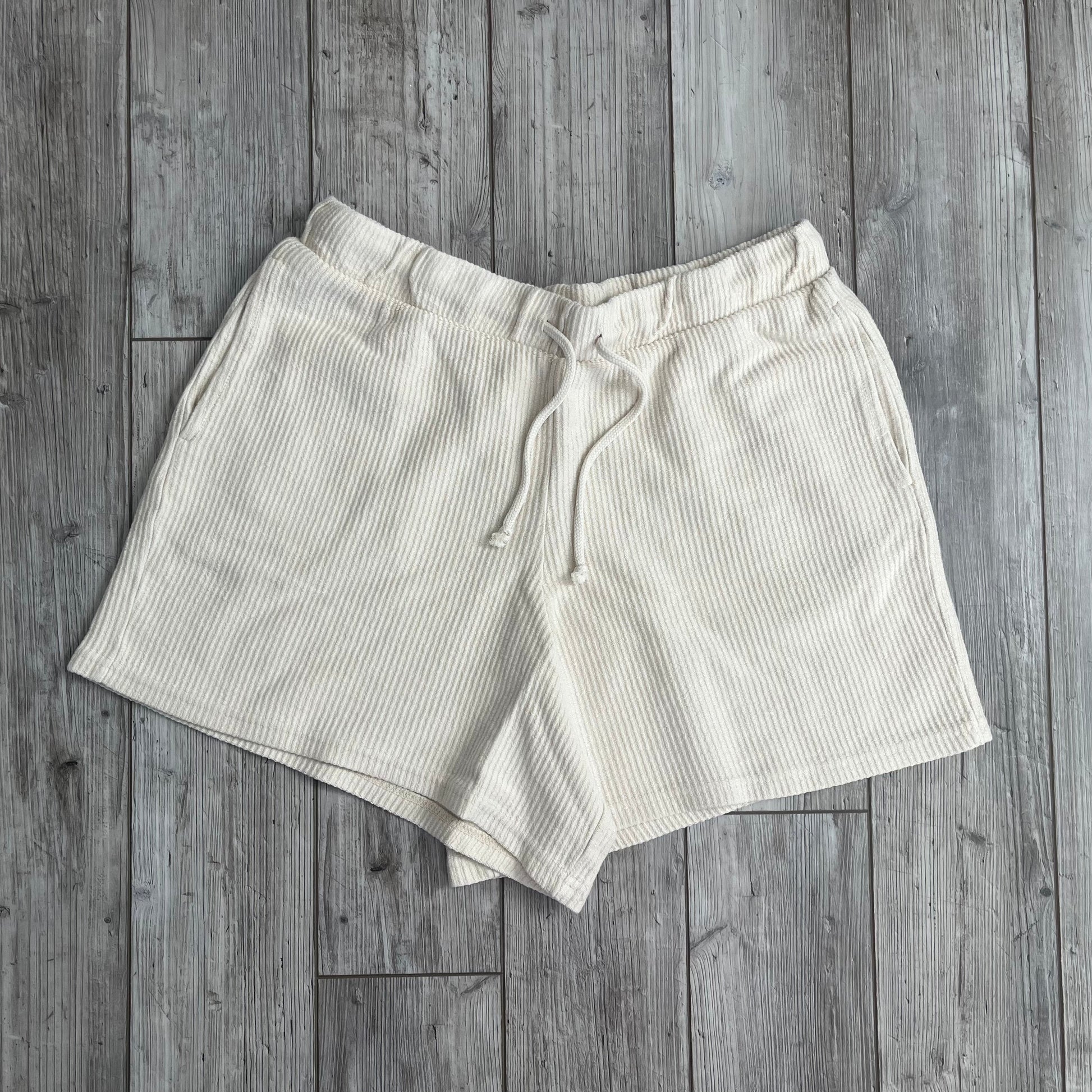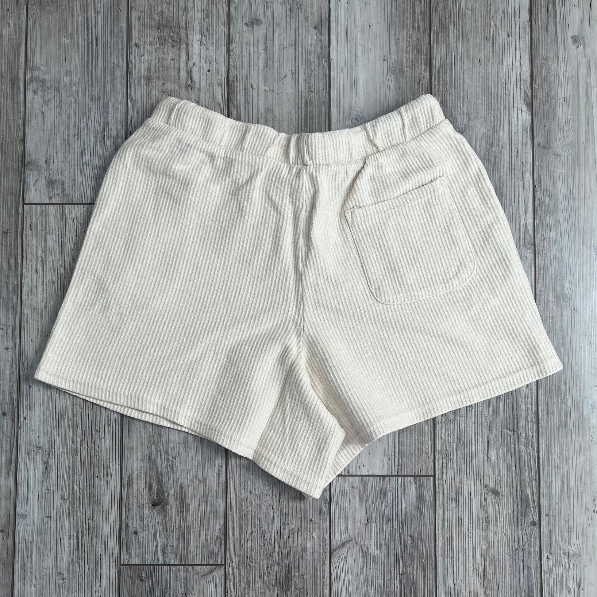 Our Corded Shorts are exclusive to Ivy + Cloth! We know you will love pairing these with our Oversized Corded Crews too! These are a flowy fit and will be coziest lounge shorts you own! They feature pockets, a single back pocket, elastic waist band and a drawstring.