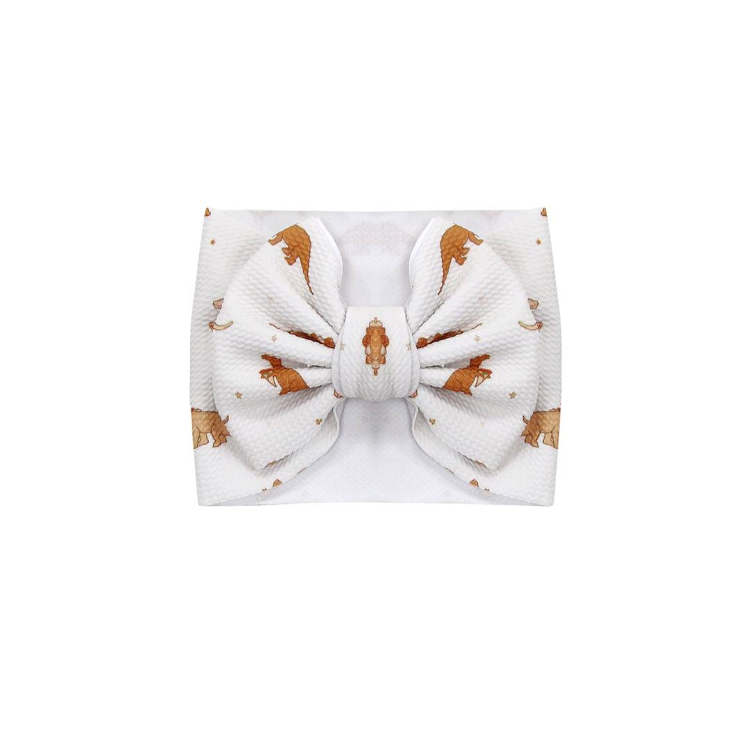 The large bow Headwrap is a must-have to complete the look! Our headwraps are made from bullet fabric and they are a poly/spandex blend, making them soft and stretchy for baby!