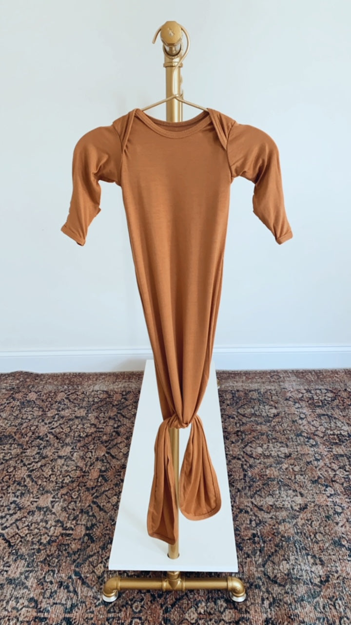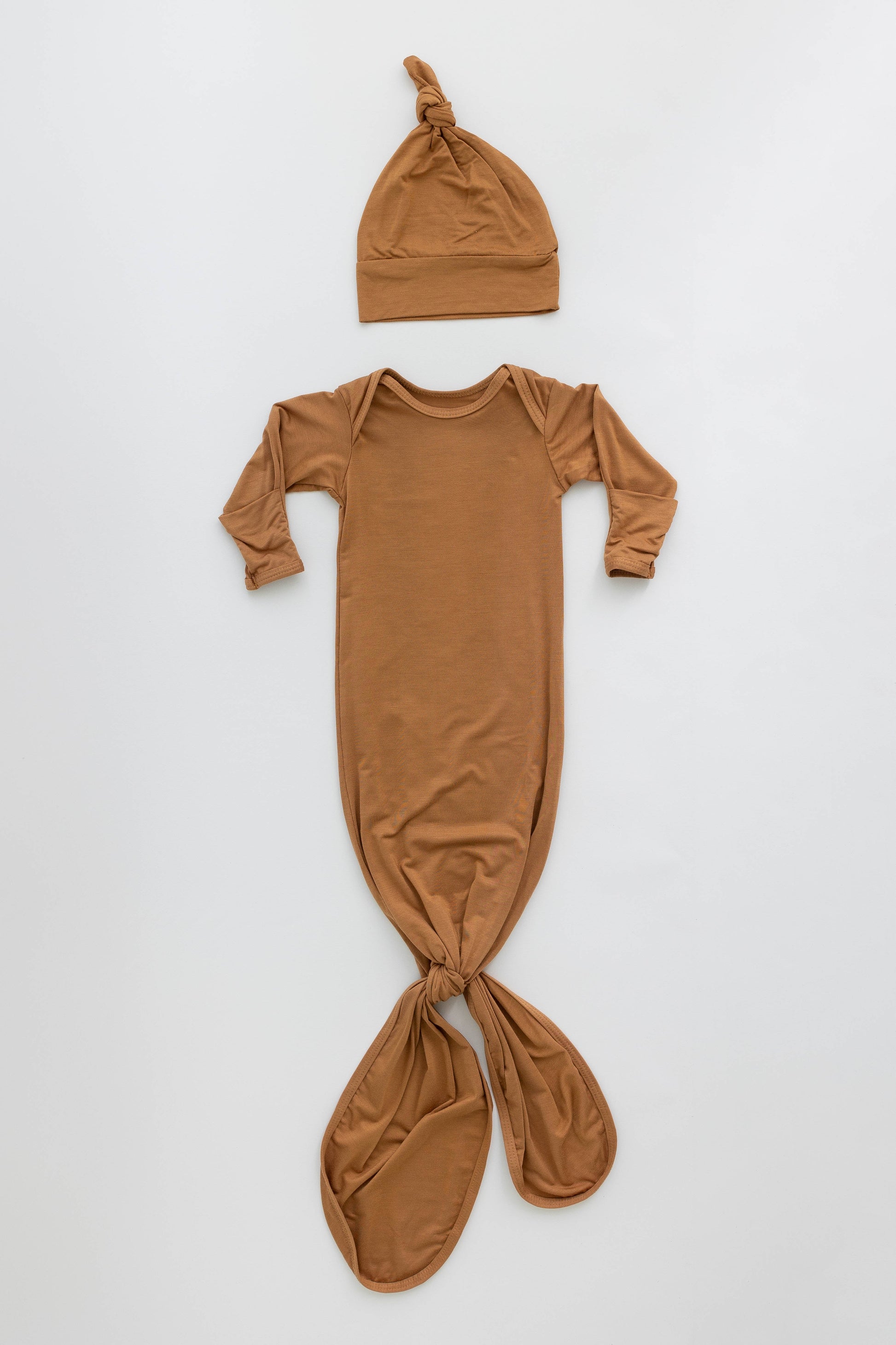 - Ideal Baby Gift - Give this knotted baby gown as a present to loved ones with babies! Our baby clothes come in classic colors like black, white, brown & navy blue and more. Not satisfied with this knotted gown & hat set? Return/exchange it within 30 days of purchase.