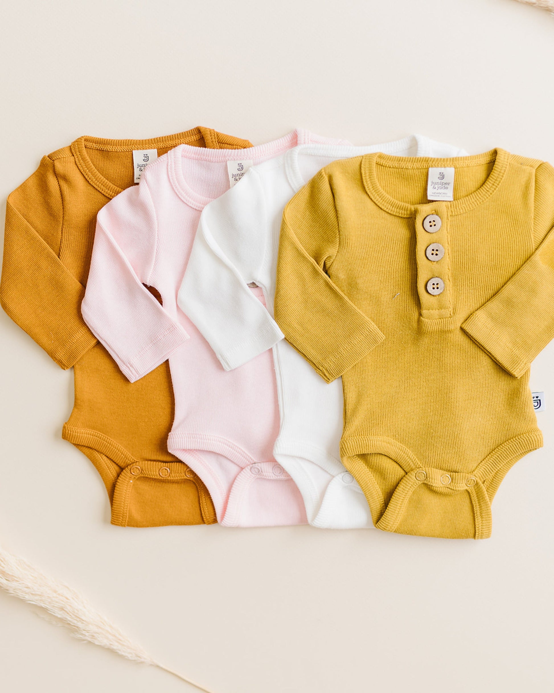 Practical buttons at the front and snaps at the bottom make dressing and diaper changes quick and easy. Pair it with our matching joggers, headbands, or beanies for endless mix and match possibilities.