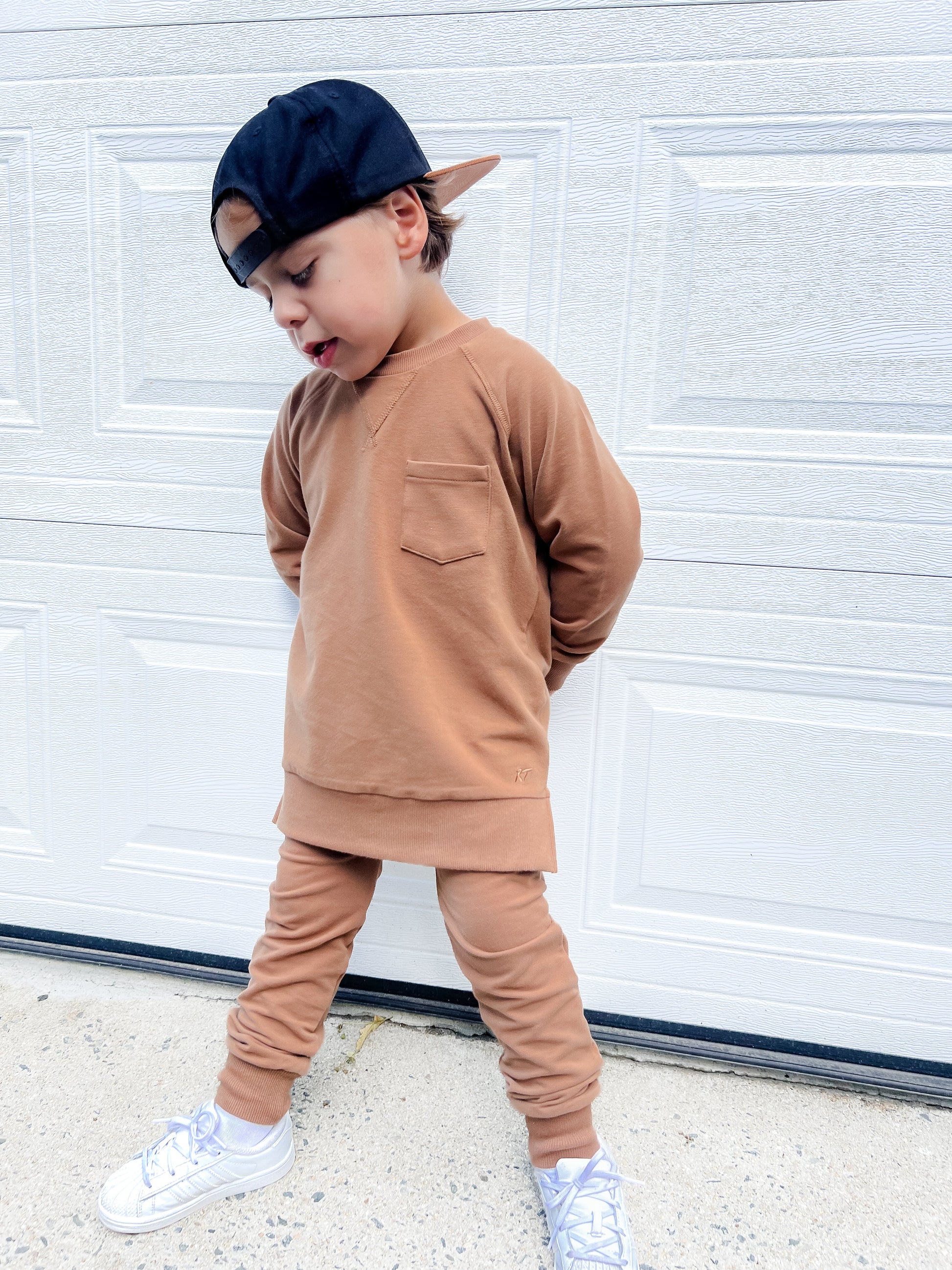 Meet the crewneck that does cozy and cool at the same time. This signature toddler crewneck features an intentionally oversized fit — no need to size up — with that relaxed, boxy look we all love. Finished in a clean Almond color that goes with everything, it’s made from soft, breathable organic cotton and designed to mix + match perfectly with our Core shorts or pants.