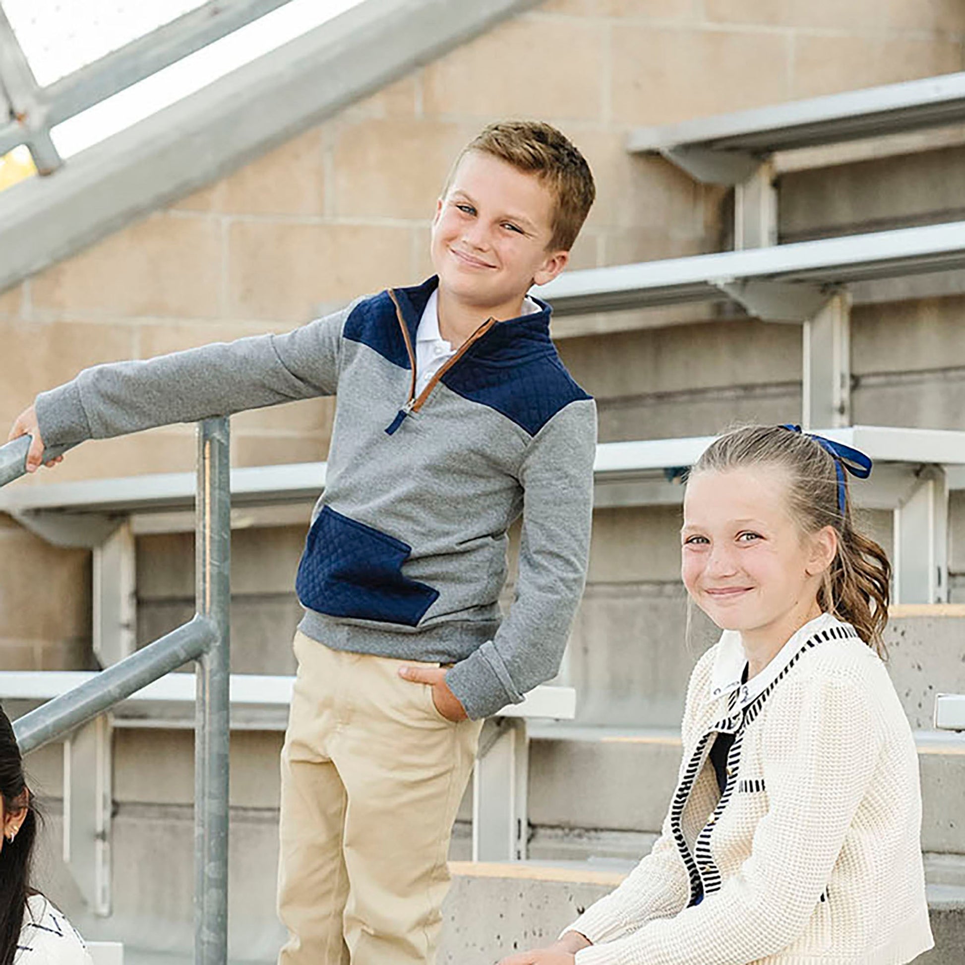 This soft pullover will be the layering wardrobe staple your boy will love to wear. Features a mock neck with half zip for easy dressing, faux suede piping, with contrasting diamond quilted fabric at the yoke and kanga pocket. Crafted from our signature organic cotton in a soft french terry fabric.