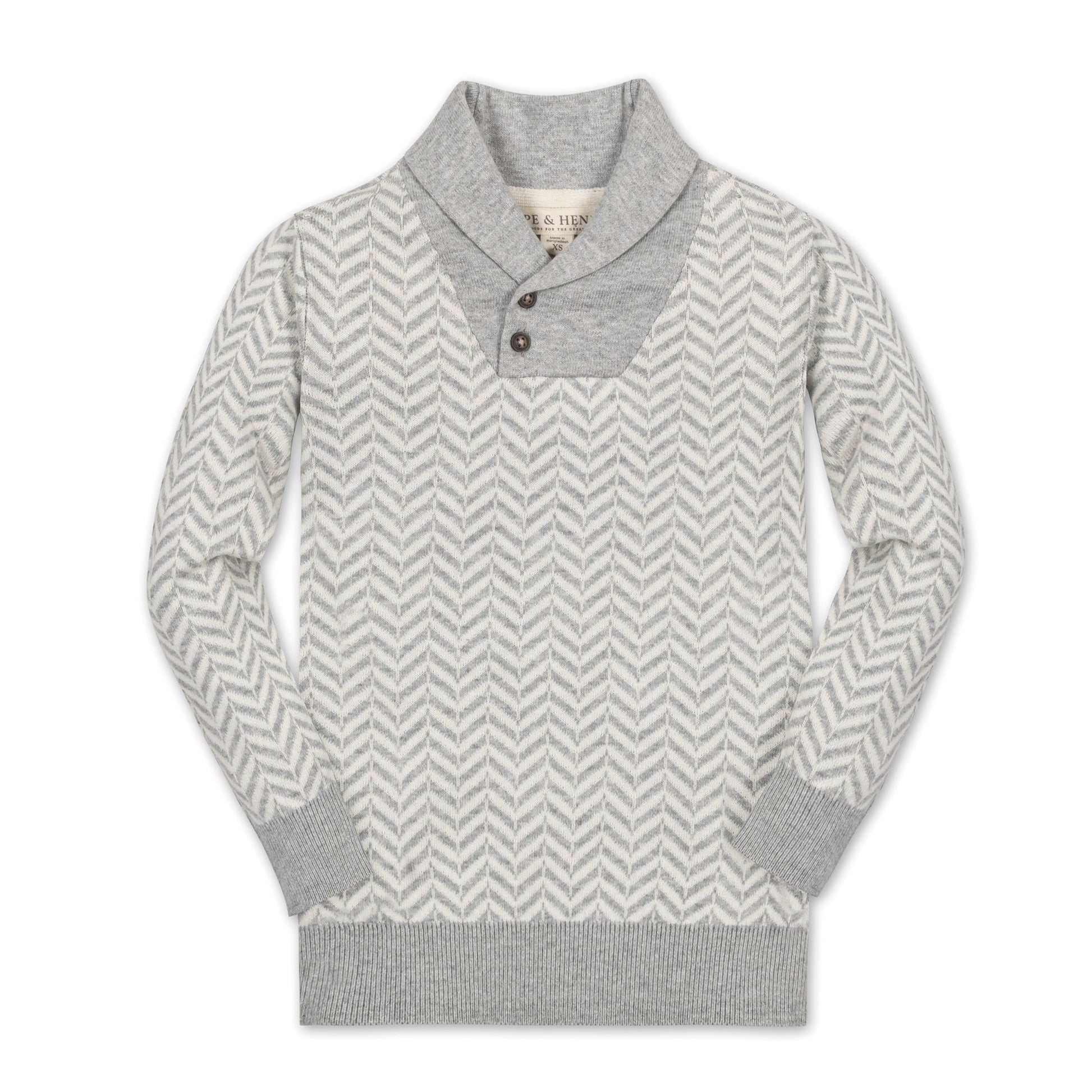 Our shawl collar sweater in soft organic cotton is the ultimate in comfort and style for your boy. Special attention to details such as the shawl collar with button closure and allover intarsia design make this an instant classic that can be worn on repeat and handed down time and again.