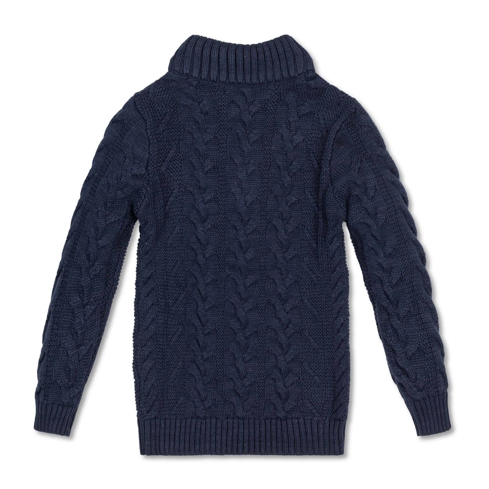 Luxuriously plush cables in our signature organic cotton yarns make this sweater a must have for cooler months. Features a rib knit mock neck with faux leather button closures at the center front placket. Fully adorned with a classic cable knit. Pairs perfectly with our collection of organic cotton button downs and pants.