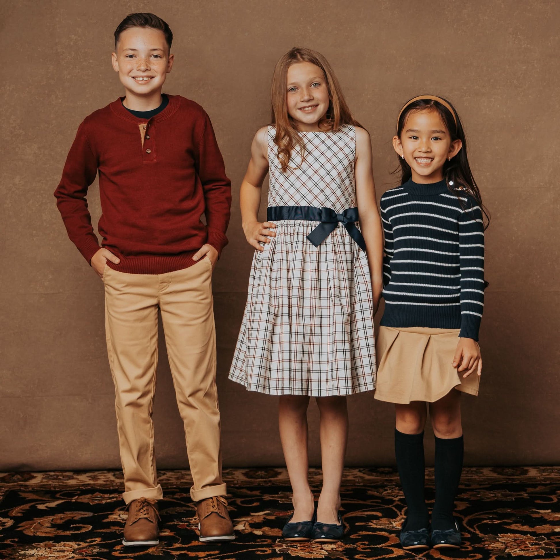 Our refined long sleeve mock neck sweater in soft organic cotton gives your girl the sophisticated style she needs this fall and winter season. Features a subtle mock neck with gold button detail, delicate striping, and rib knit trim. Looks perfectly chic paired with our assortment of organic cotton skirts, jumpers, and leggings!