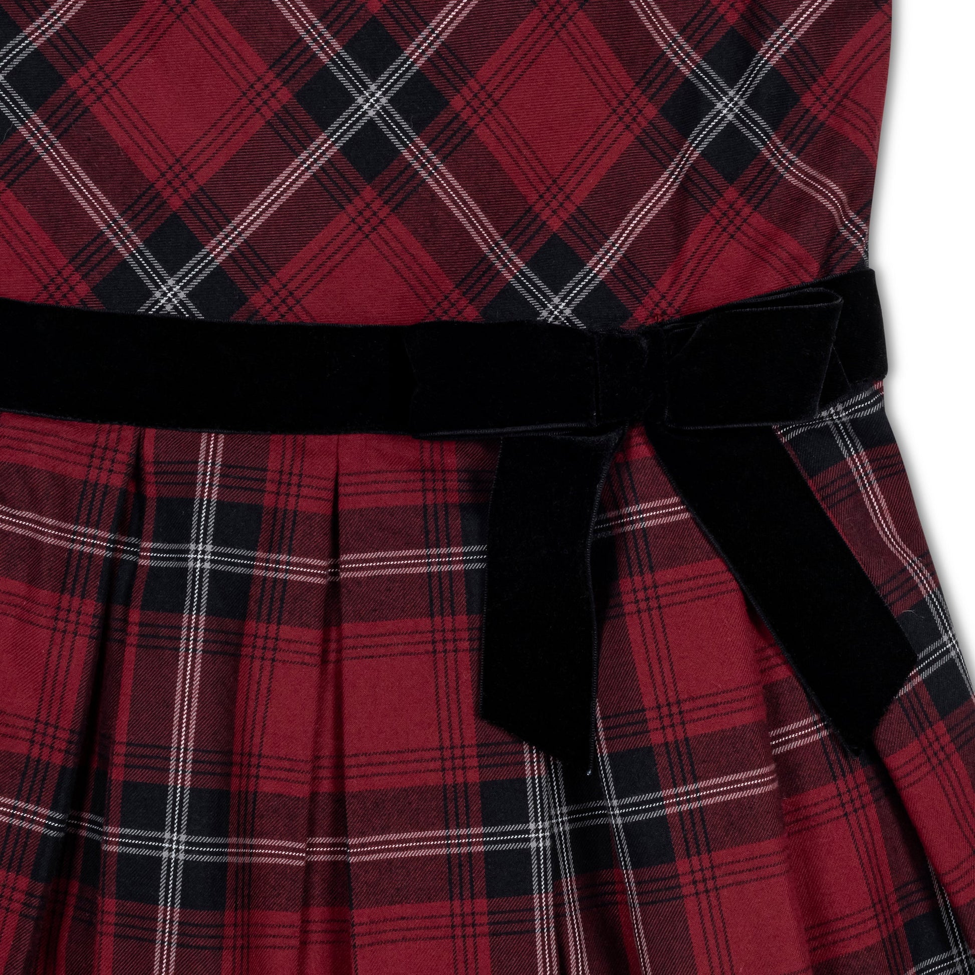 Cut from soft and chic organic cotton calvary twill in a classic silhouette, this pretty dress will be your girl's go-to piece for picture time this holiday season. Features a woven peter pan collar, sweet flutter sleeves, and velvet trim at the waist sash and bow. Fully lined with a zipper closure down the center back for easy dressing.