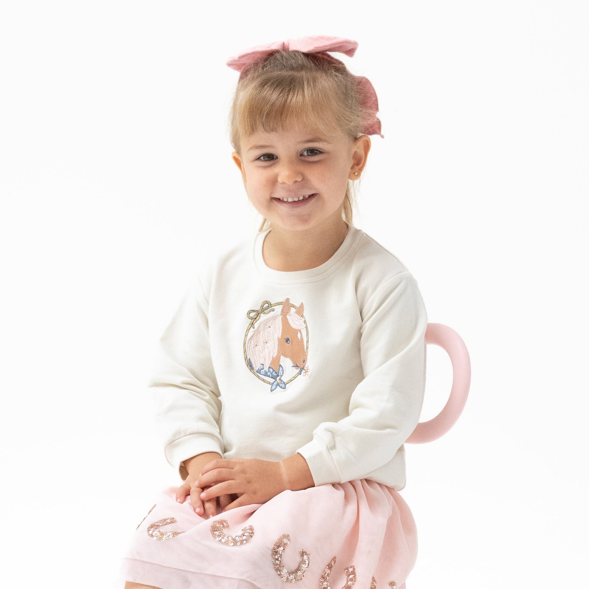 Wrap your little one in warmth and whimsy with our Oversize Sweatshirt, made from super-soft French Terry perfect for crisp fall and winter days. The charming horse head applique adds a playful, storybook touch to every adventure—whether it’s backyard fun or cozy cuddle time. With a roomy, comfy fit, this sweatshirt is made for exploring, snuggling, and everything in between!