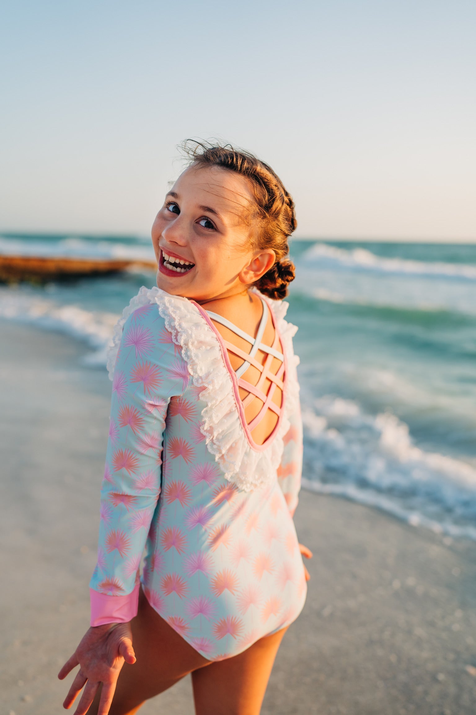 - Made from SPF 50 swim material (82% polyester; 18% spandex)