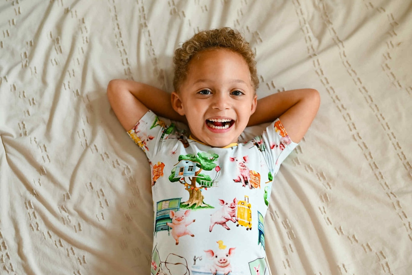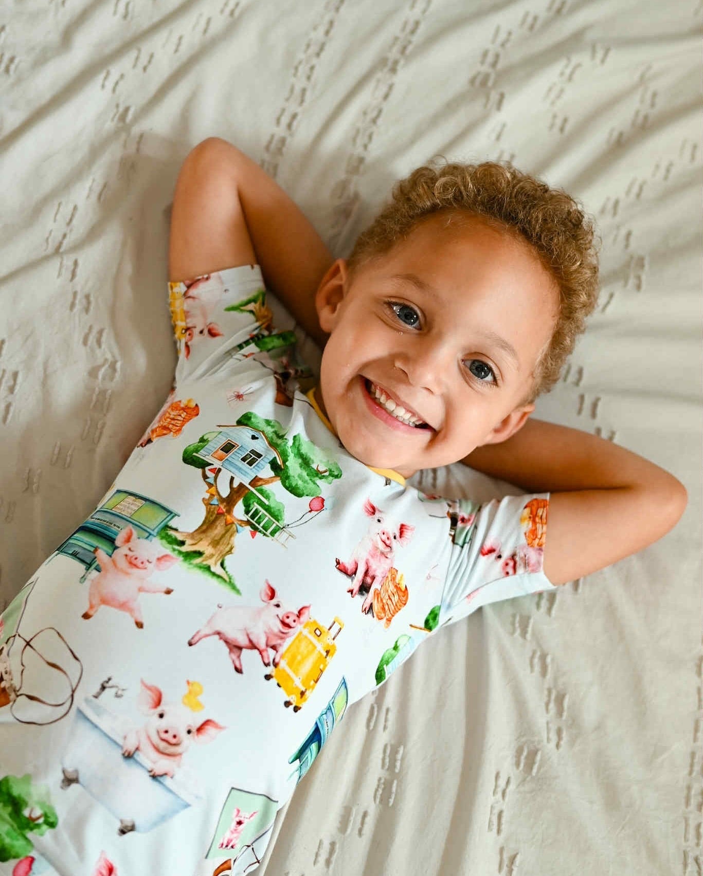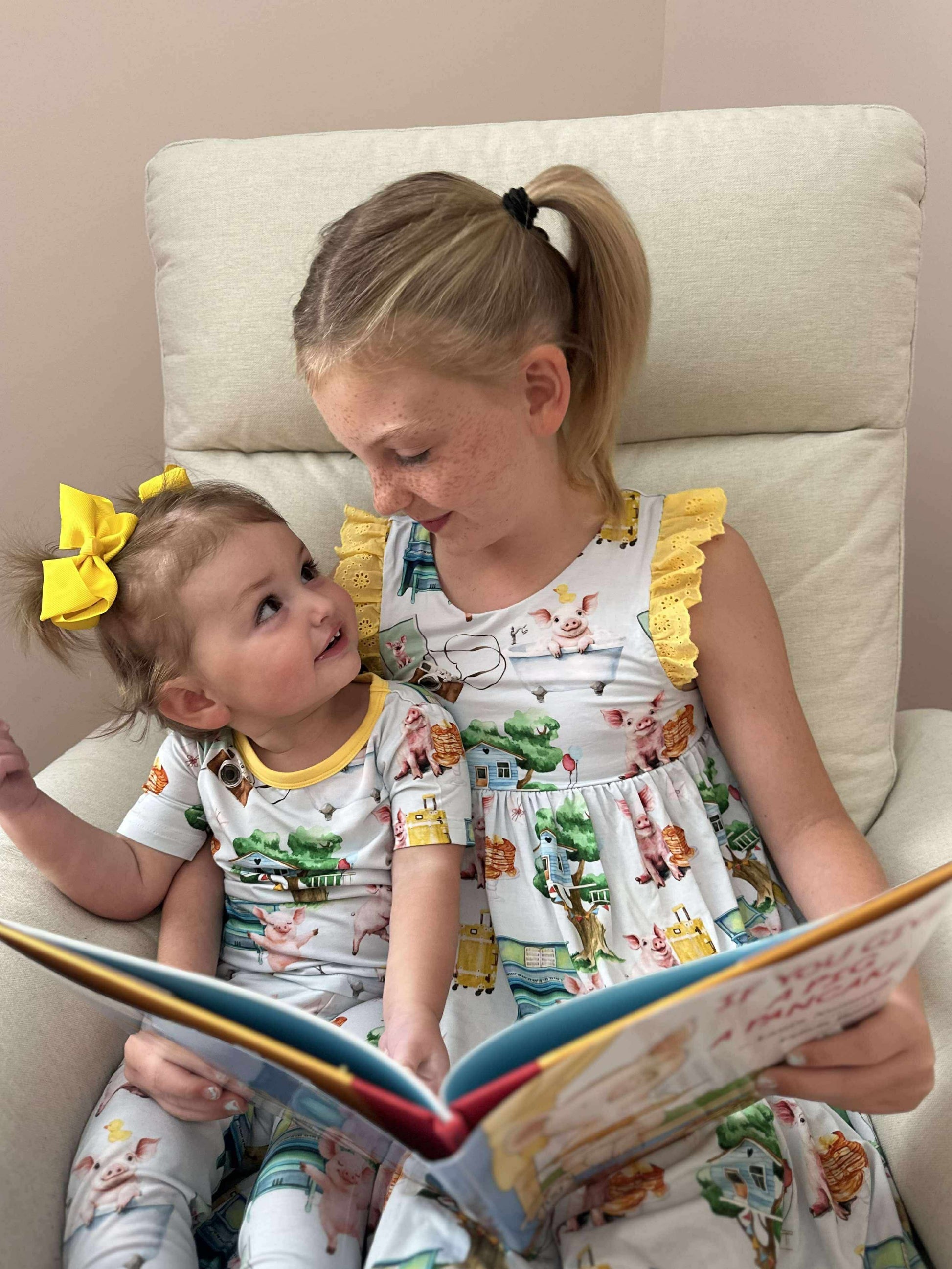 If you give your kid a piggy lounge set, they'll want to wear it all of the time. 🐷 This print is straight from from the storybook - sweet, silly, and syrupy soft! 🥞