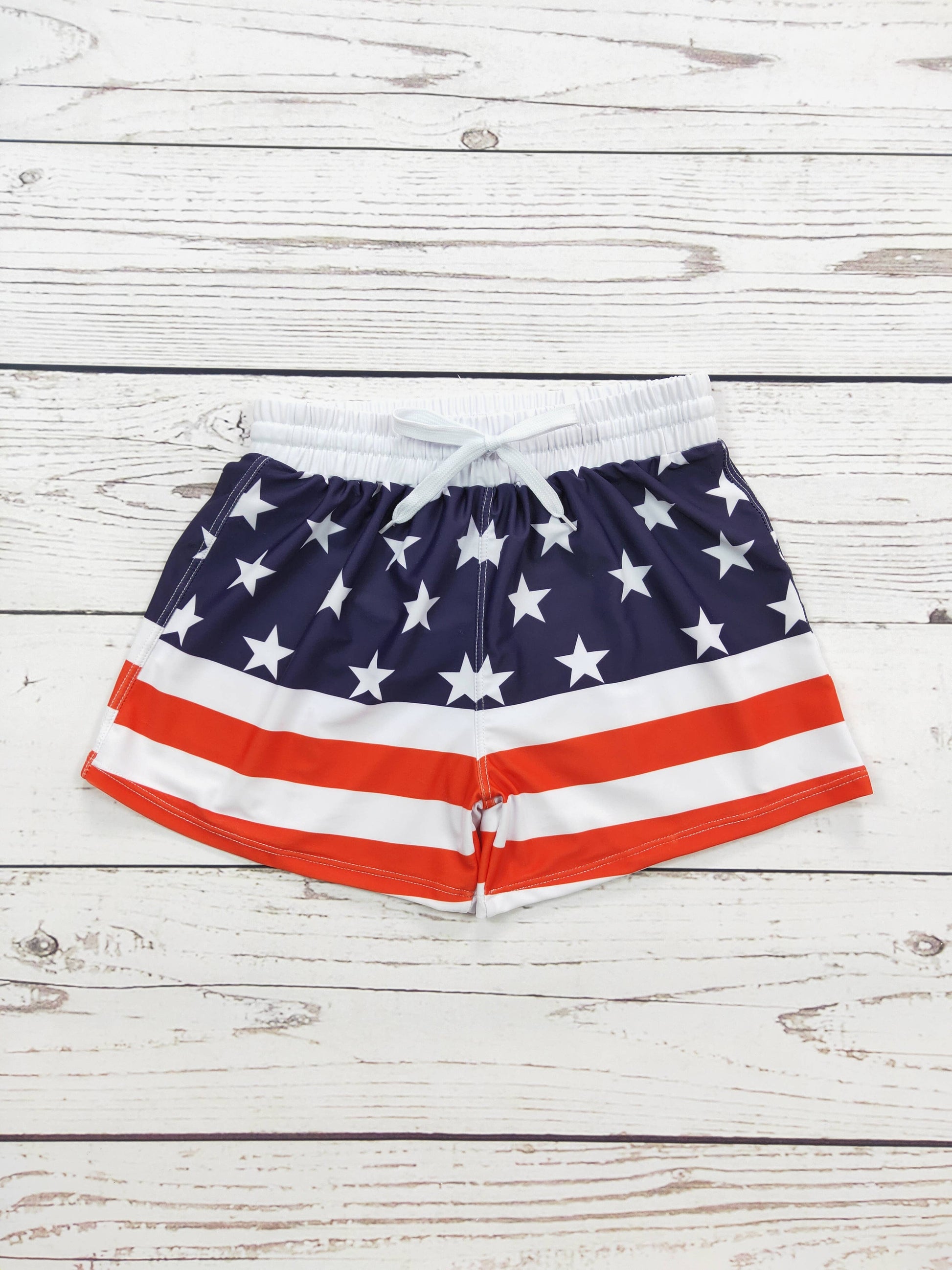 Patriotic 4Th Of July Boys Swim Shorts ETA: 8-10 Days These swim shorts feature a stylish patriotic design, perfect for celebrating the 4th of July. Made with high-quality materials, they are durable and comfortable, ensuring that your child can swim and play all day long. Plus, with an ETA of 8-10 days, you'll have these shorts ready in time for your holiday festivities. Celebrate in style with these patriotic swim shorts for boys.