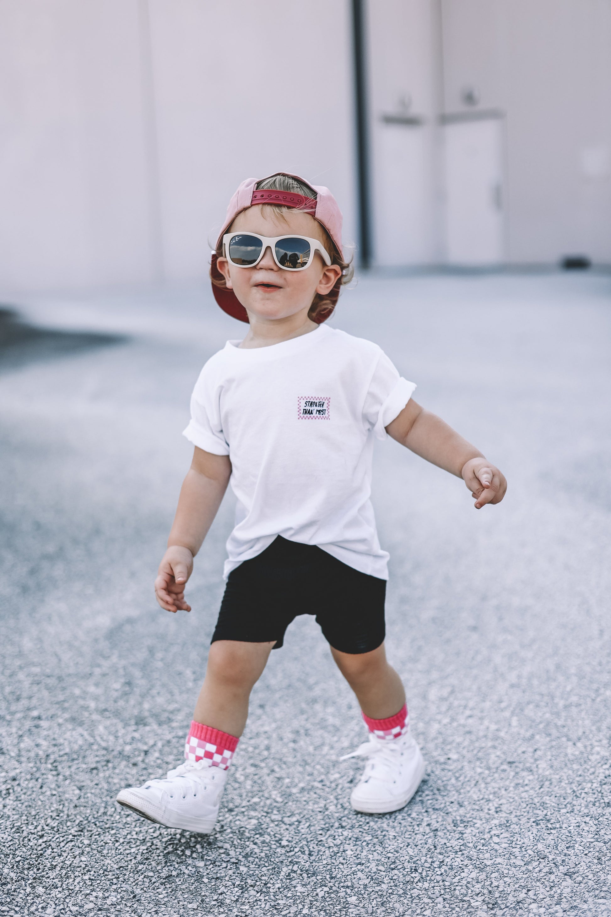 Sizes Infant/XXS, Extra Small, Small + Medium have logo grips on the bottom of the feet and size Large has a stitched logo on the bottom of the feet.