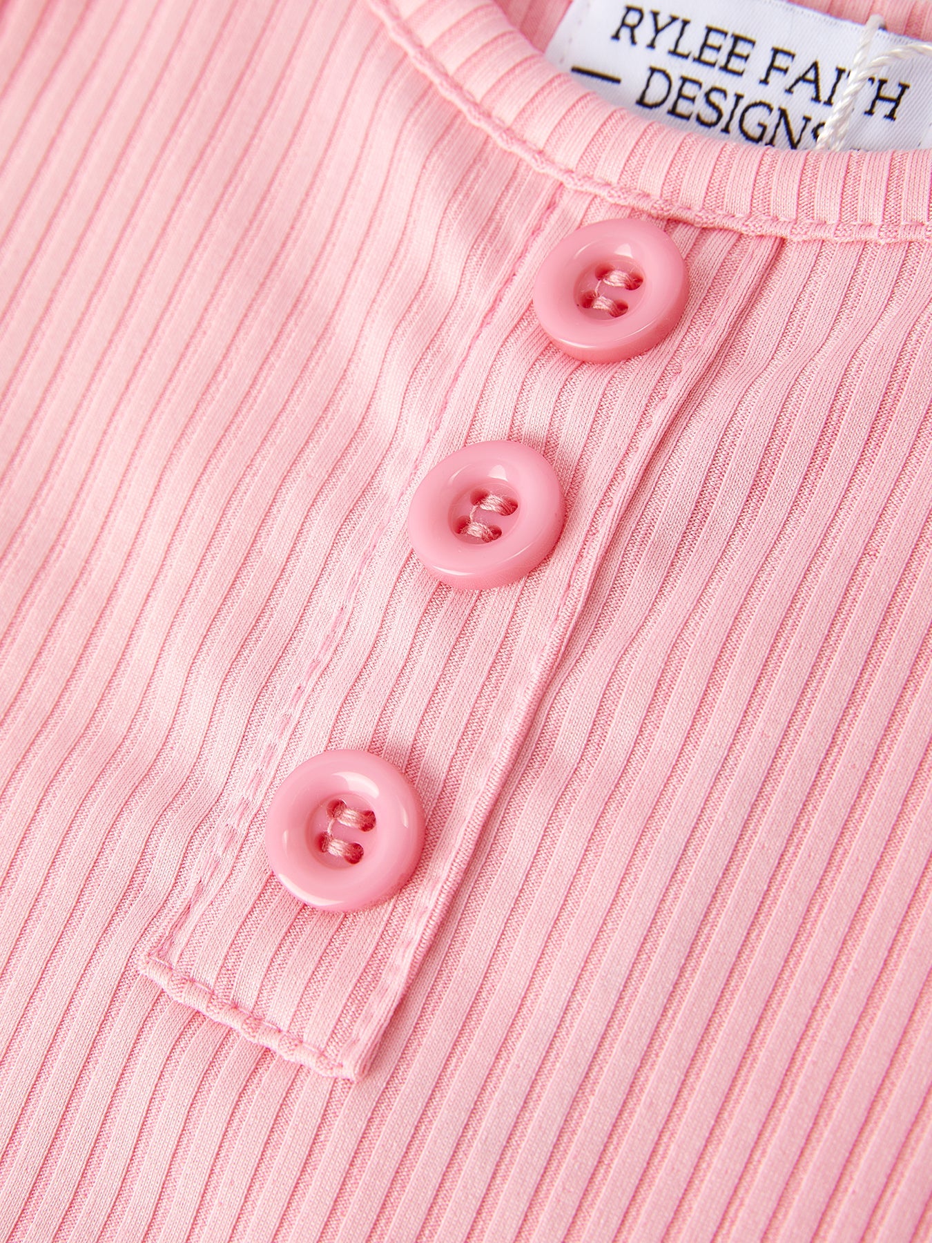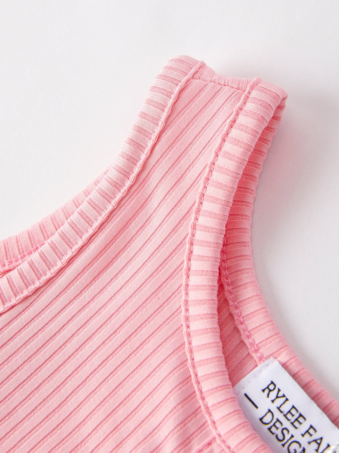 Pink Girls Top Bow Floral Print Bell Bottom Pants Set