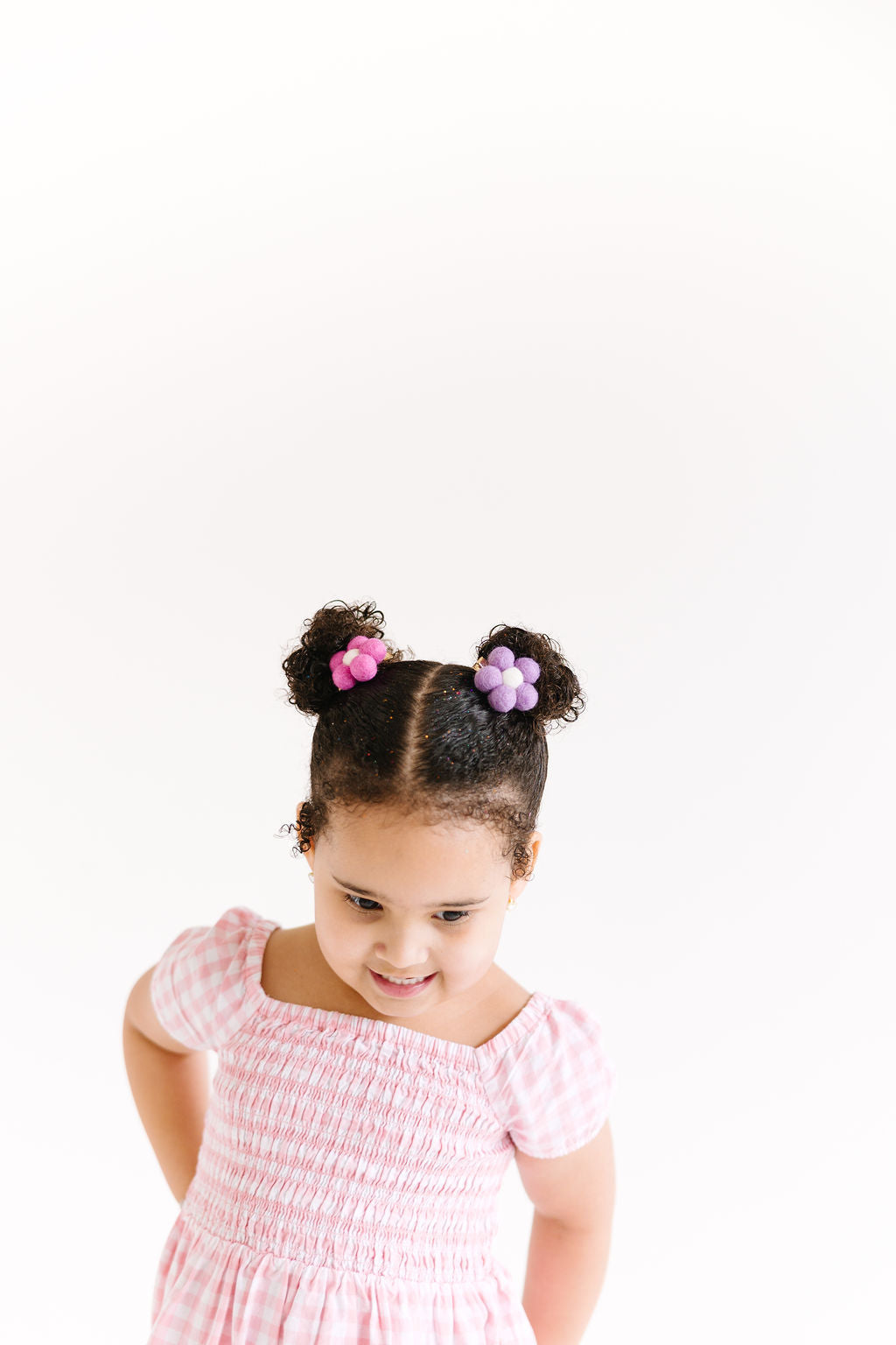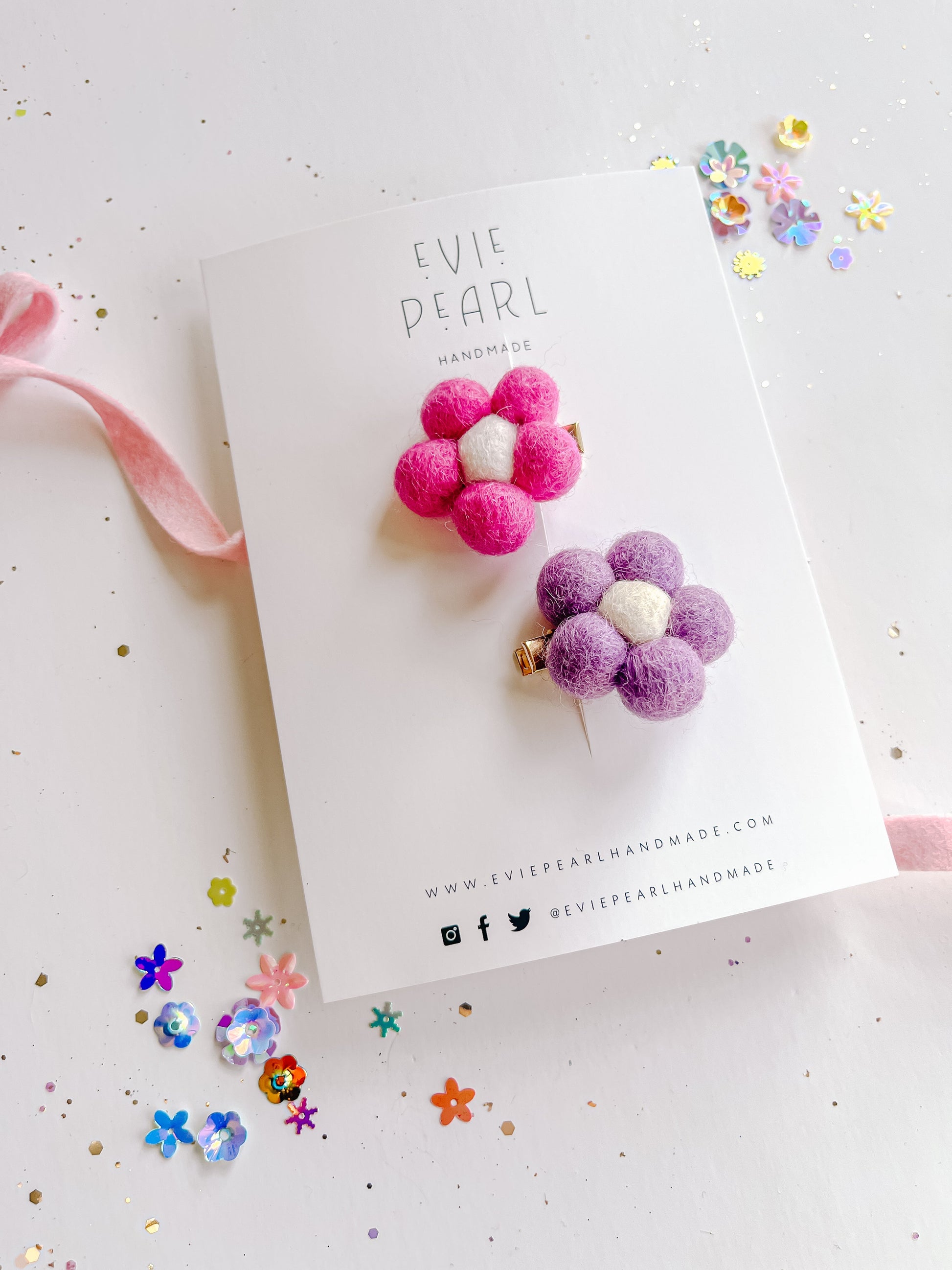 Pink & Purple Daisy Felt Hair Clip Set: this listing comes with 2 daisy clips.