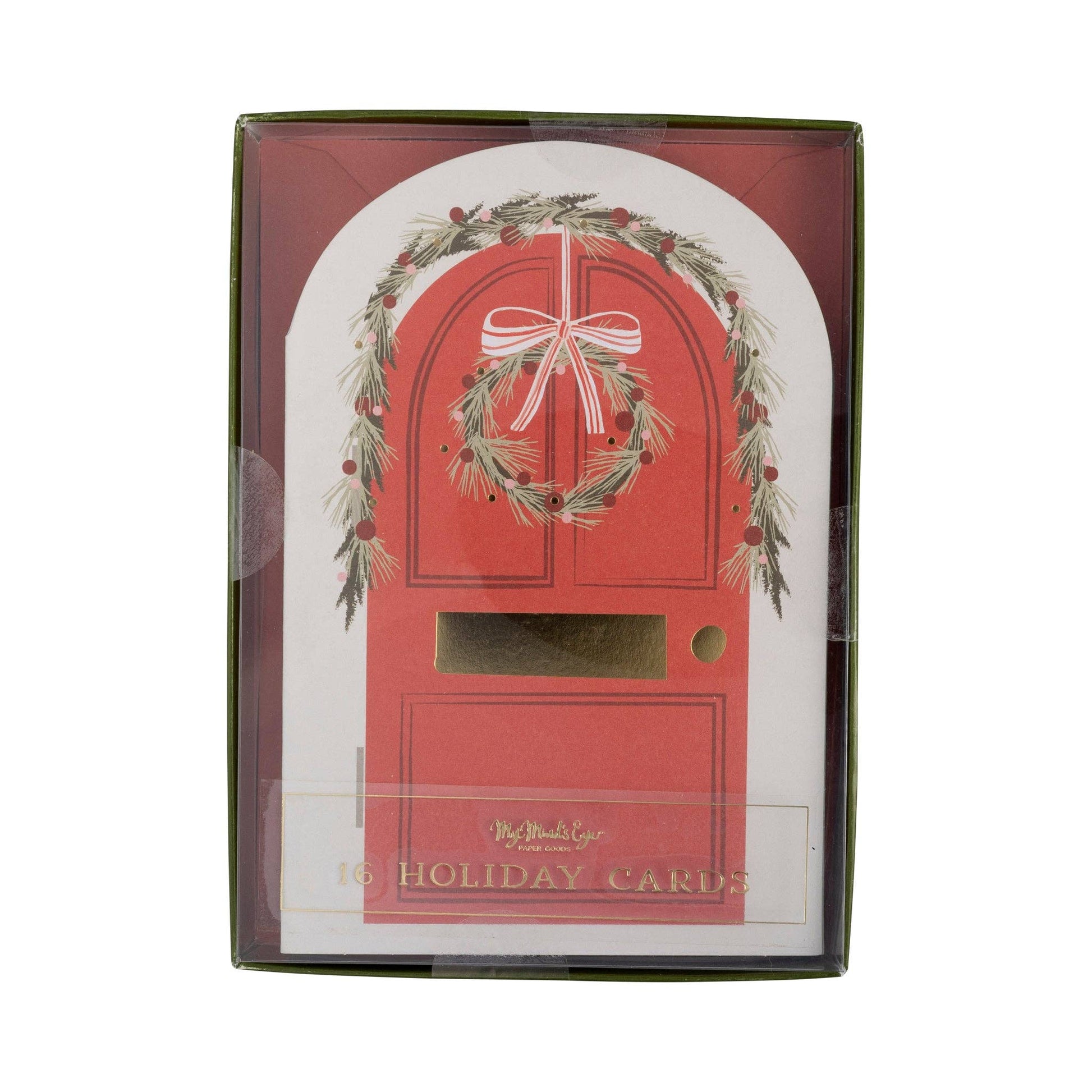 Spread holiday cheer with our Christmas Door Boxed Card Set! This set includes 16 cards featuring a charming Christmas door design. Perfect for sending warm wishes to loved ones. Seasonal stationary with festive flair - check!