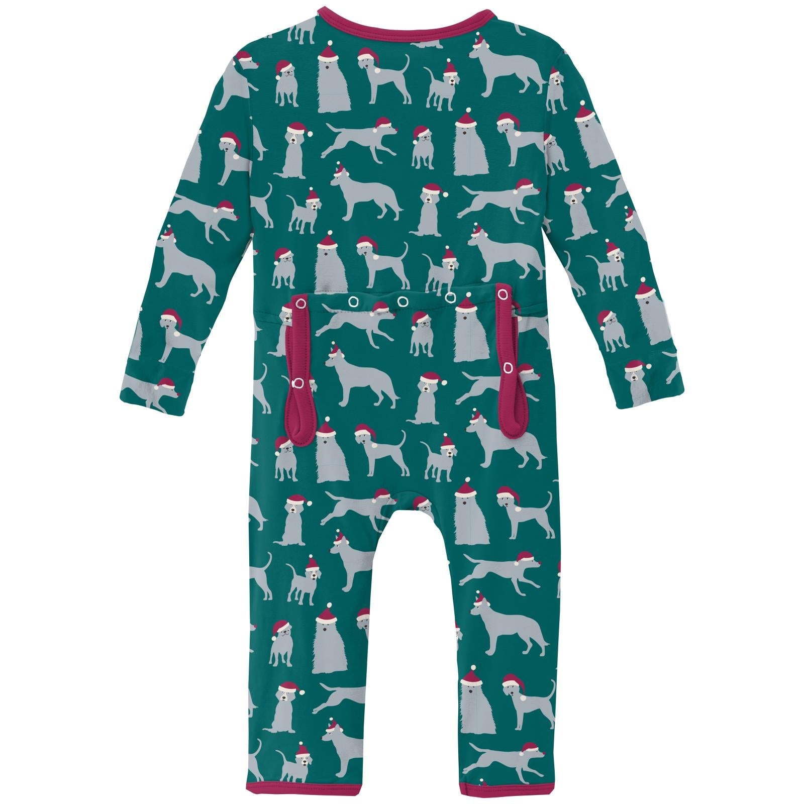 Print Coverall with 2 Way Zipper in Cedar Santa Dogs