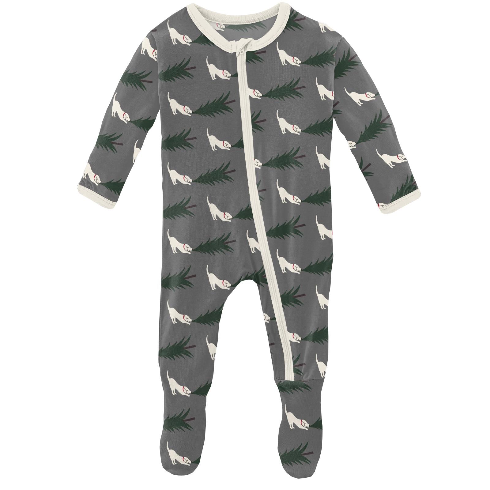 Print Footie with Zipper in Pewter Christmas Tree Drag