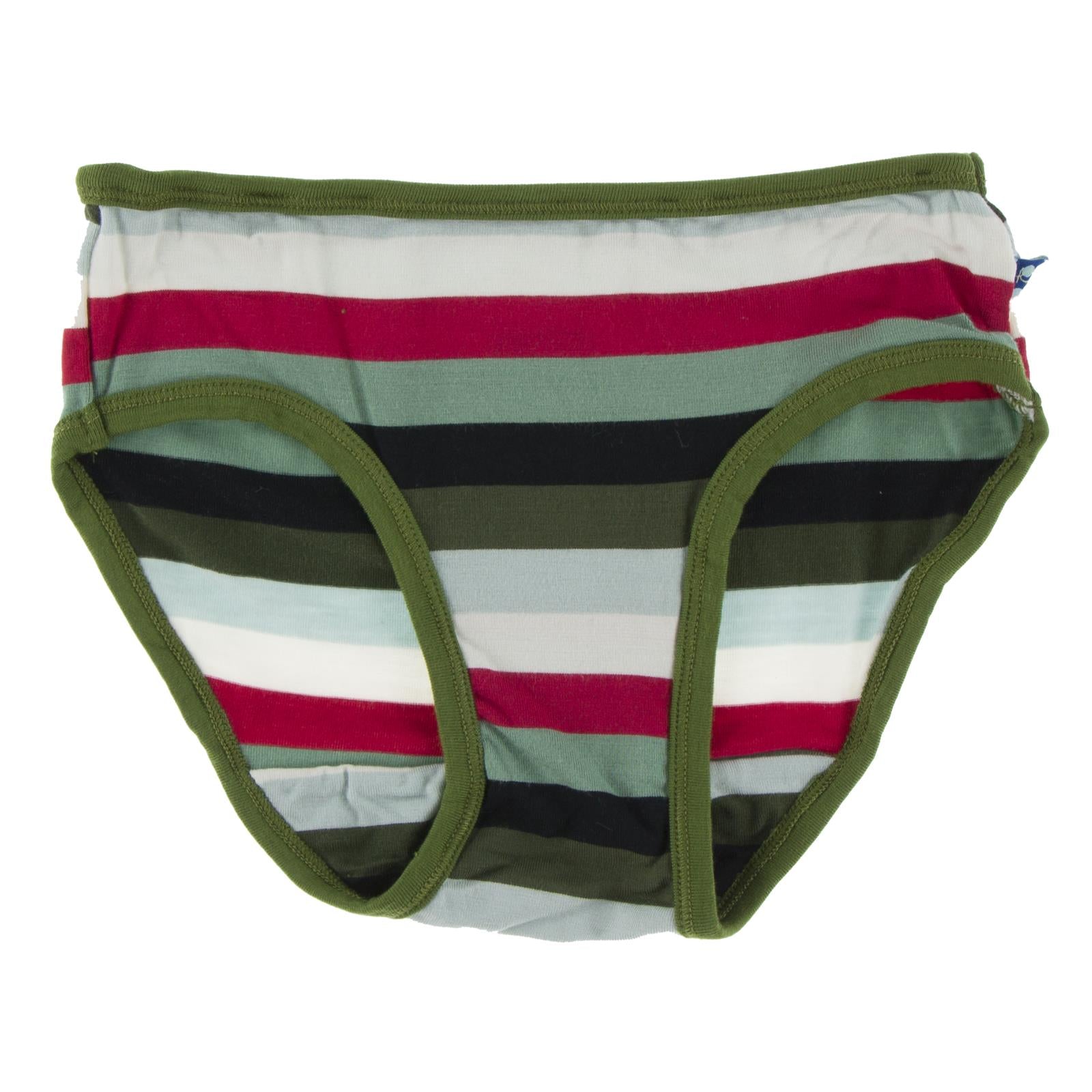 Print Underwear in Christmas Multi Stripe with Moss Trim
