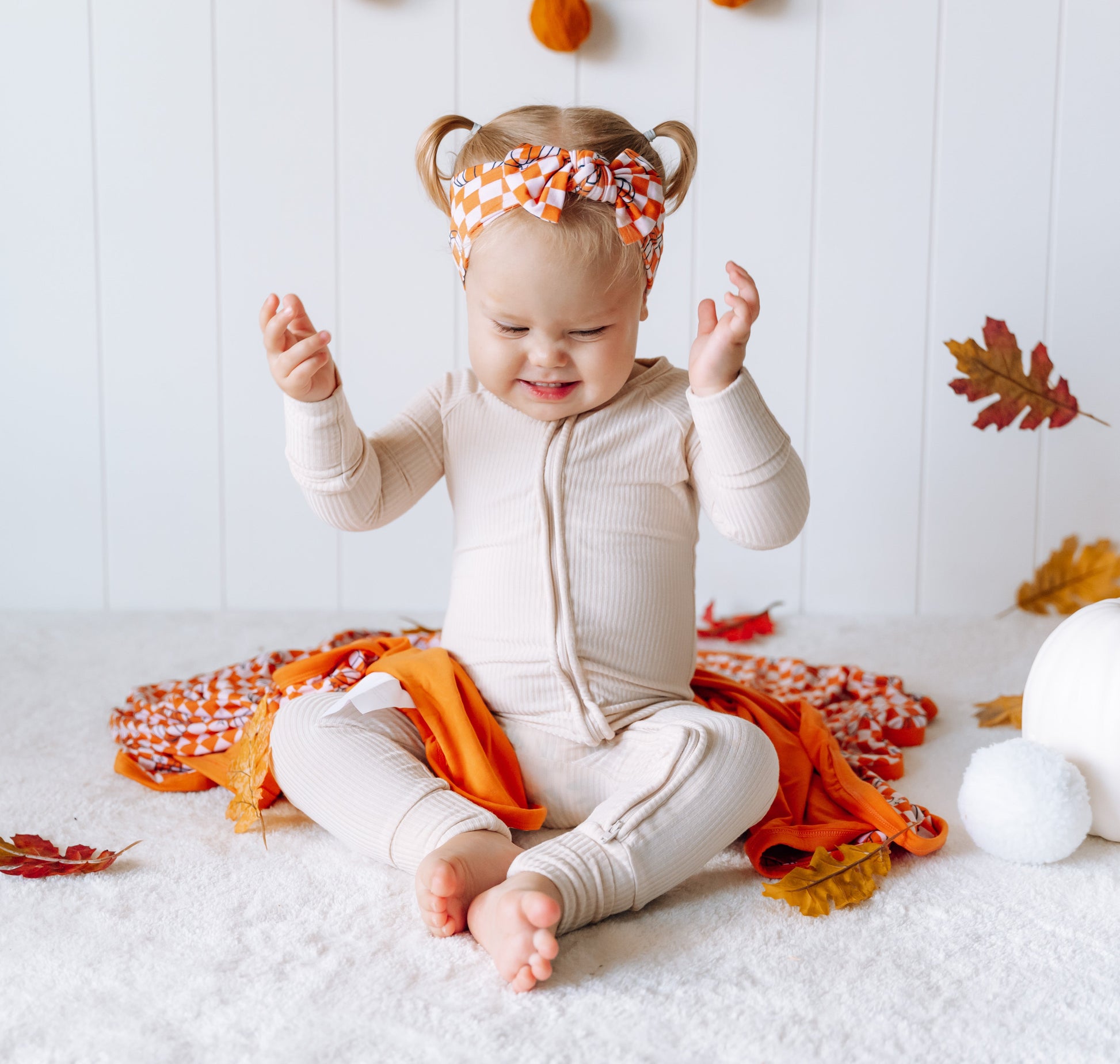 Looking for something to make your little girl stand out? Check out our Pumpkin Checks Dream Bow! With its eye-catching pumpkin-hued checkered print and bamboo material, it's the perfect way to add some fun and fall flair to any outfit! Big looks for a tiny price, it's a dream come true!