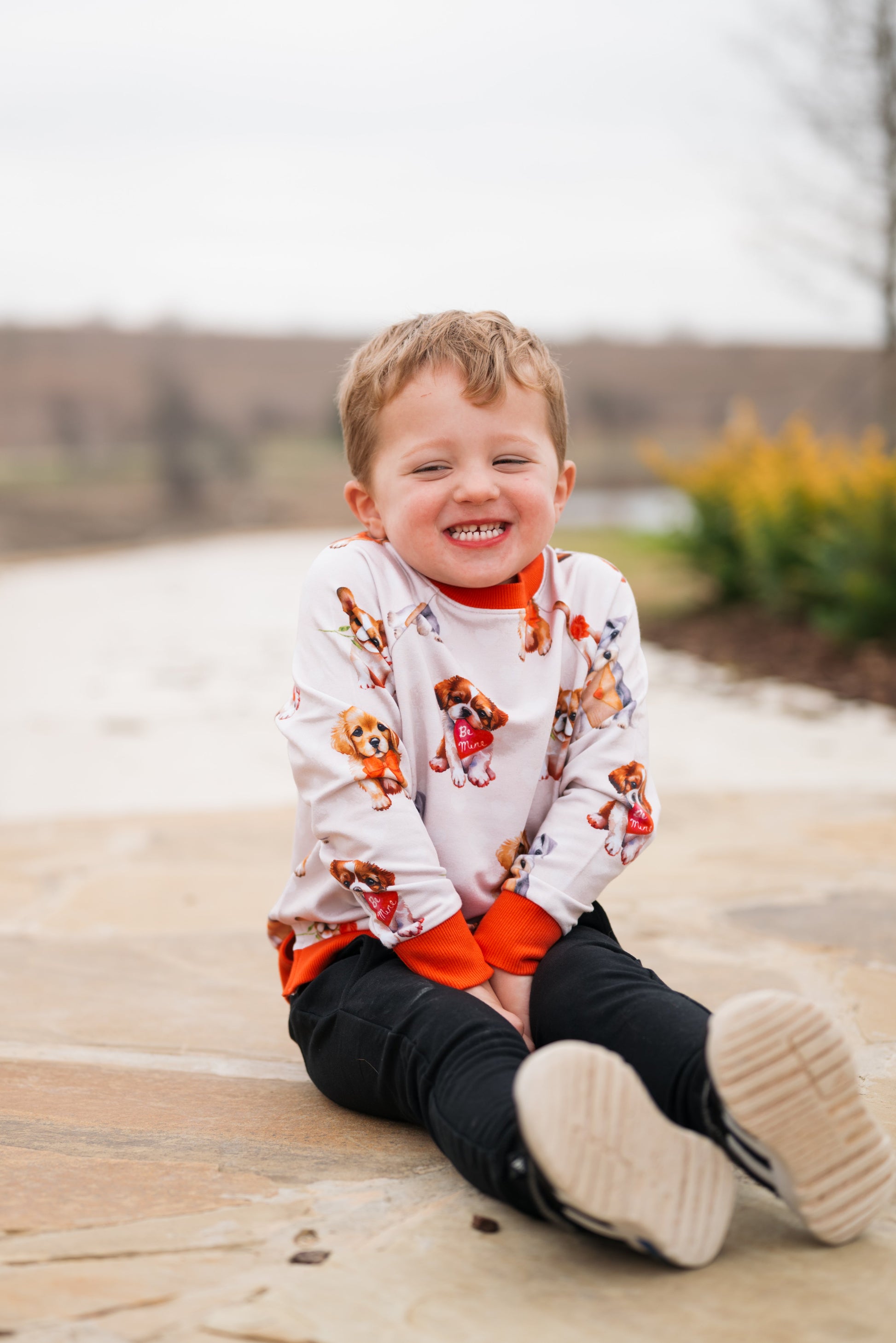 This adorable collection is just so doggone cute for Valentine's Day! Made from soft bamboo fabric, this darling, gender neutral collection features playful puppies holding hearts, love letters, and roses. The neutral beige background is complimented with pops of Valentine’s Day red, making it both a-dog-able and stylish - just perfect for little ones to play, cuddle, and celebrate love in a fun and cozy way ♥️