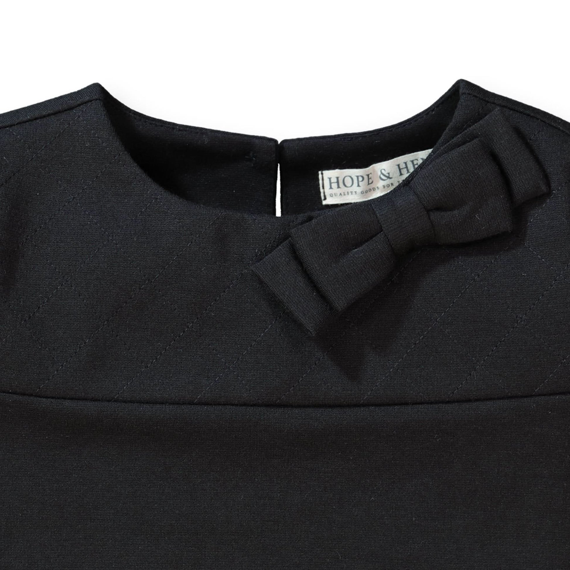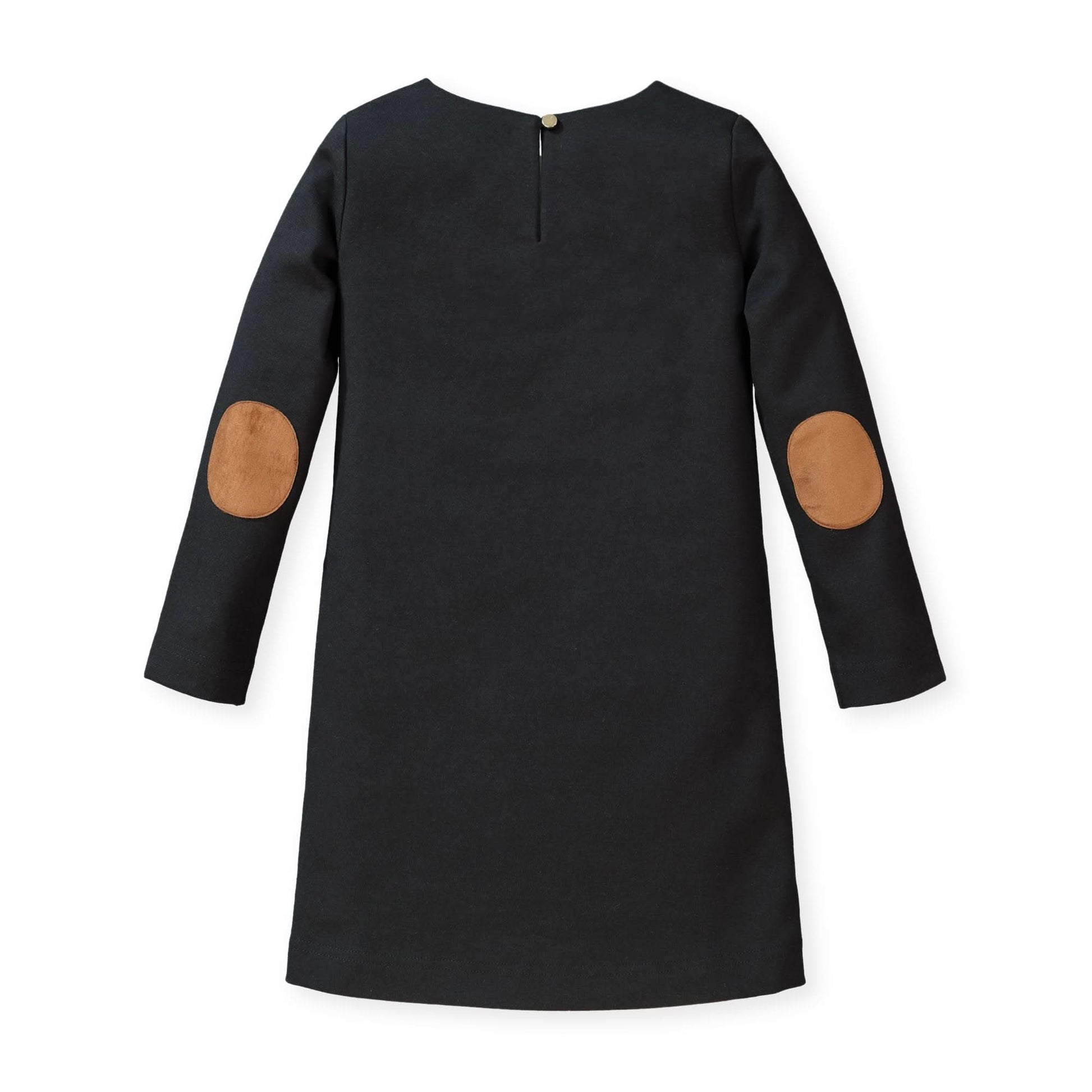 Your girl will be ready to show up in style to school this fall! Perfect for picture time or play time, the thick knit fabric has plenty of stretch for comfort and the suede details at the elbows and pockets add an equestrian touch. Gold buttons at the front add just the right amount of sparkle.