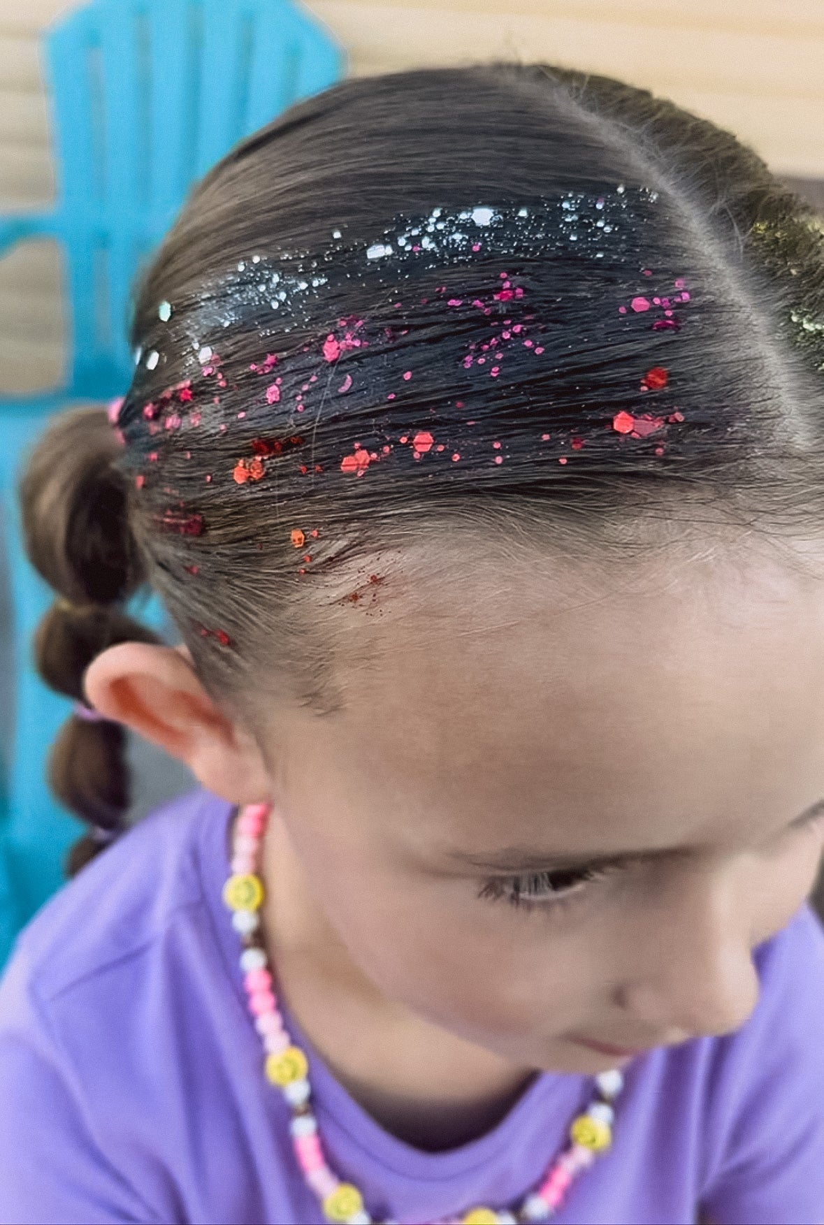 Our in-house made hair glitter is created with high-quality water based gel that dries clear and never flakes + premium, perfectly curated glitter mixes. Magical mornings between moms and minis begin with Hair Glitter from Gussy Up Bow Co.- IYKYK!