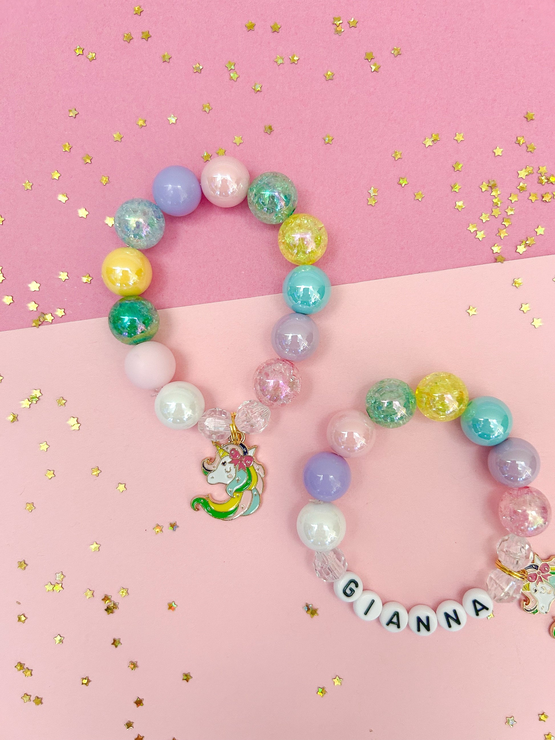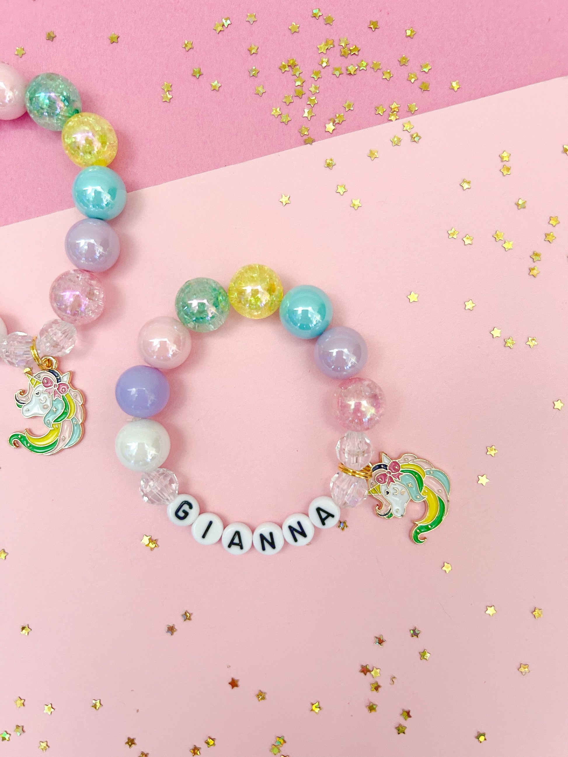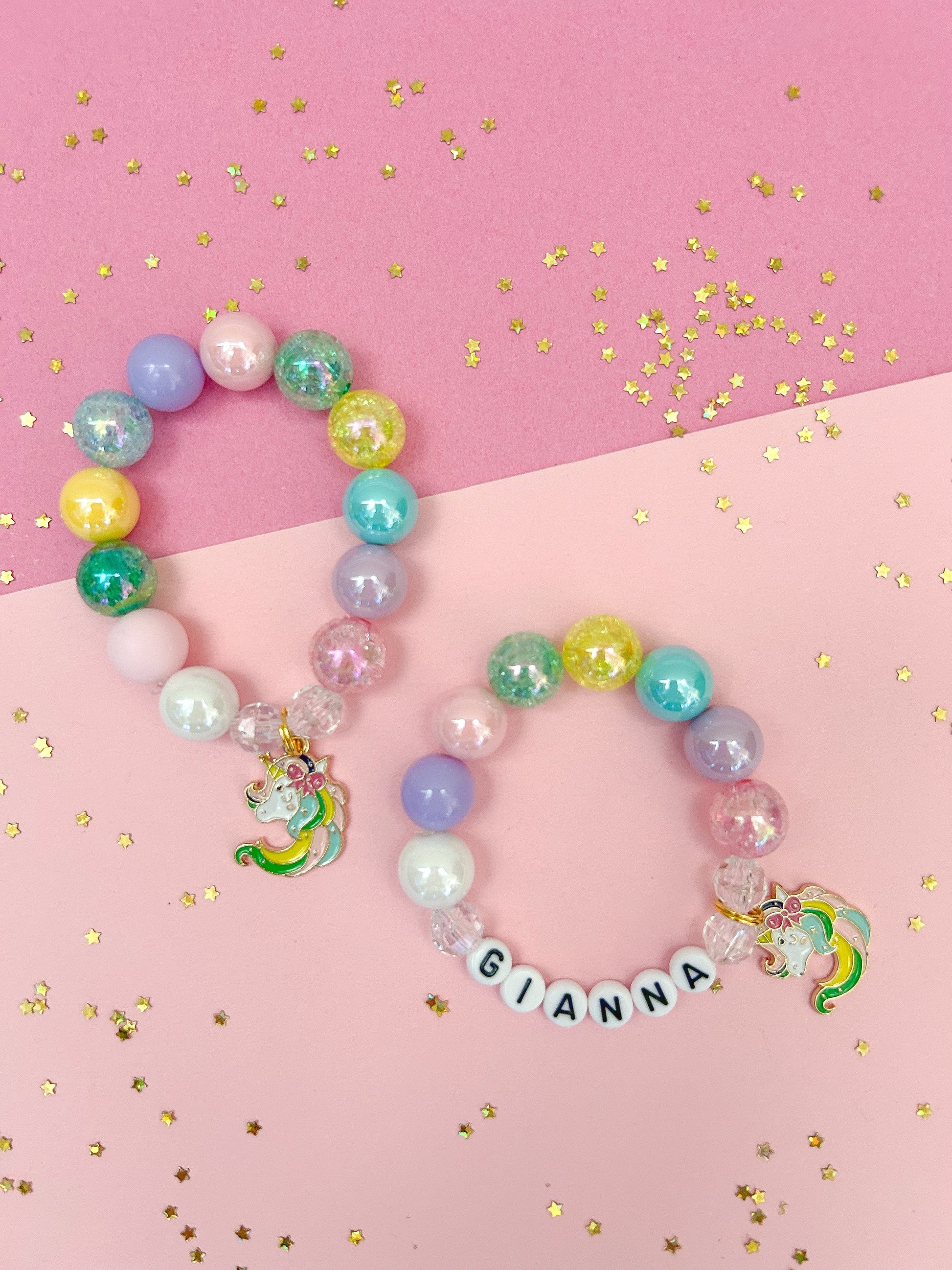 Rainbow Unicorn Kids Charm Bracelet, Personalized, Custom Name