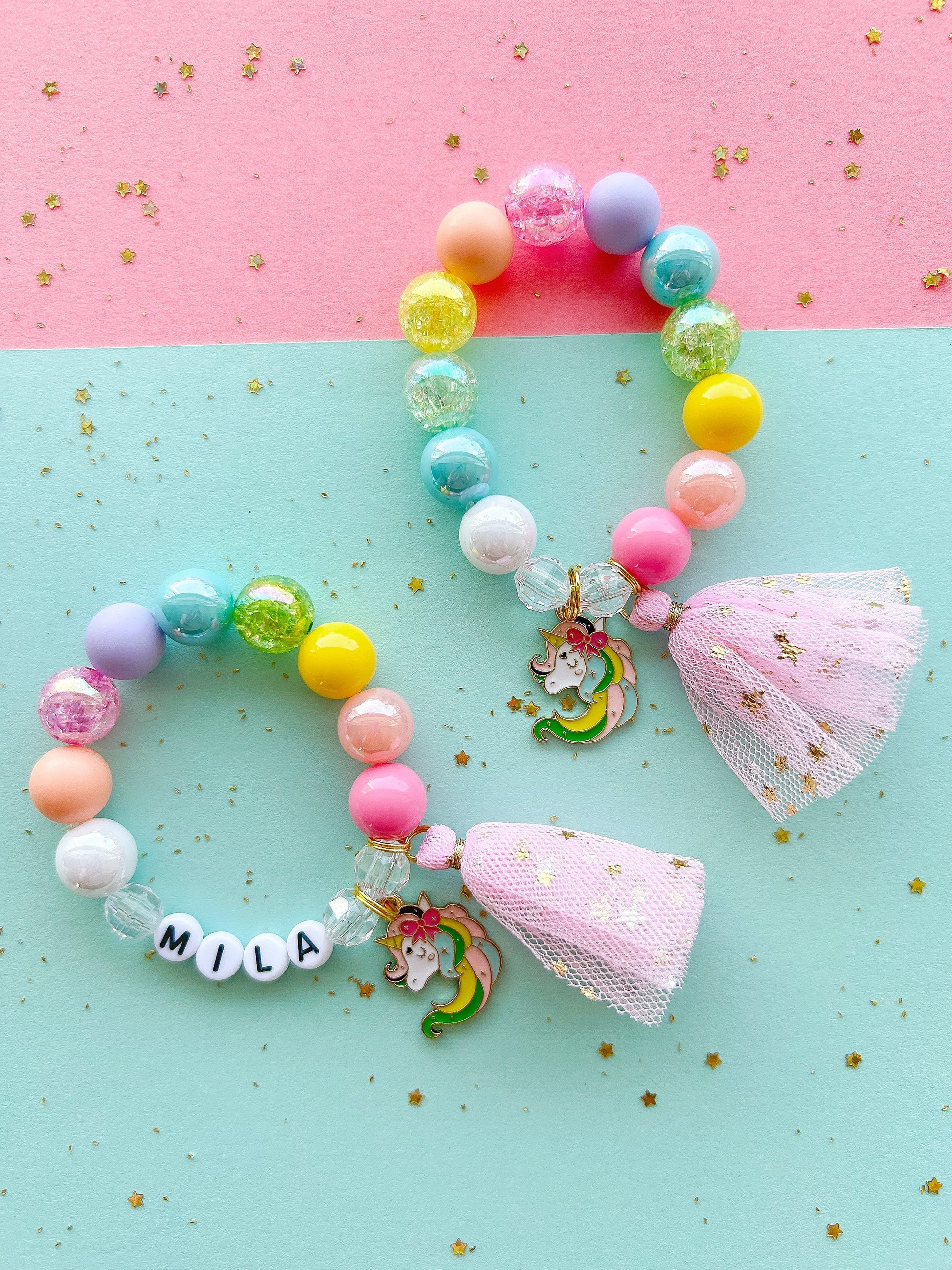 Rainbow Unicorn Kids Tassel Charm Bracelet, Personalized, Custom Name