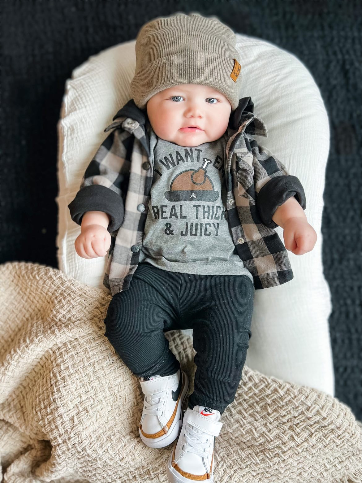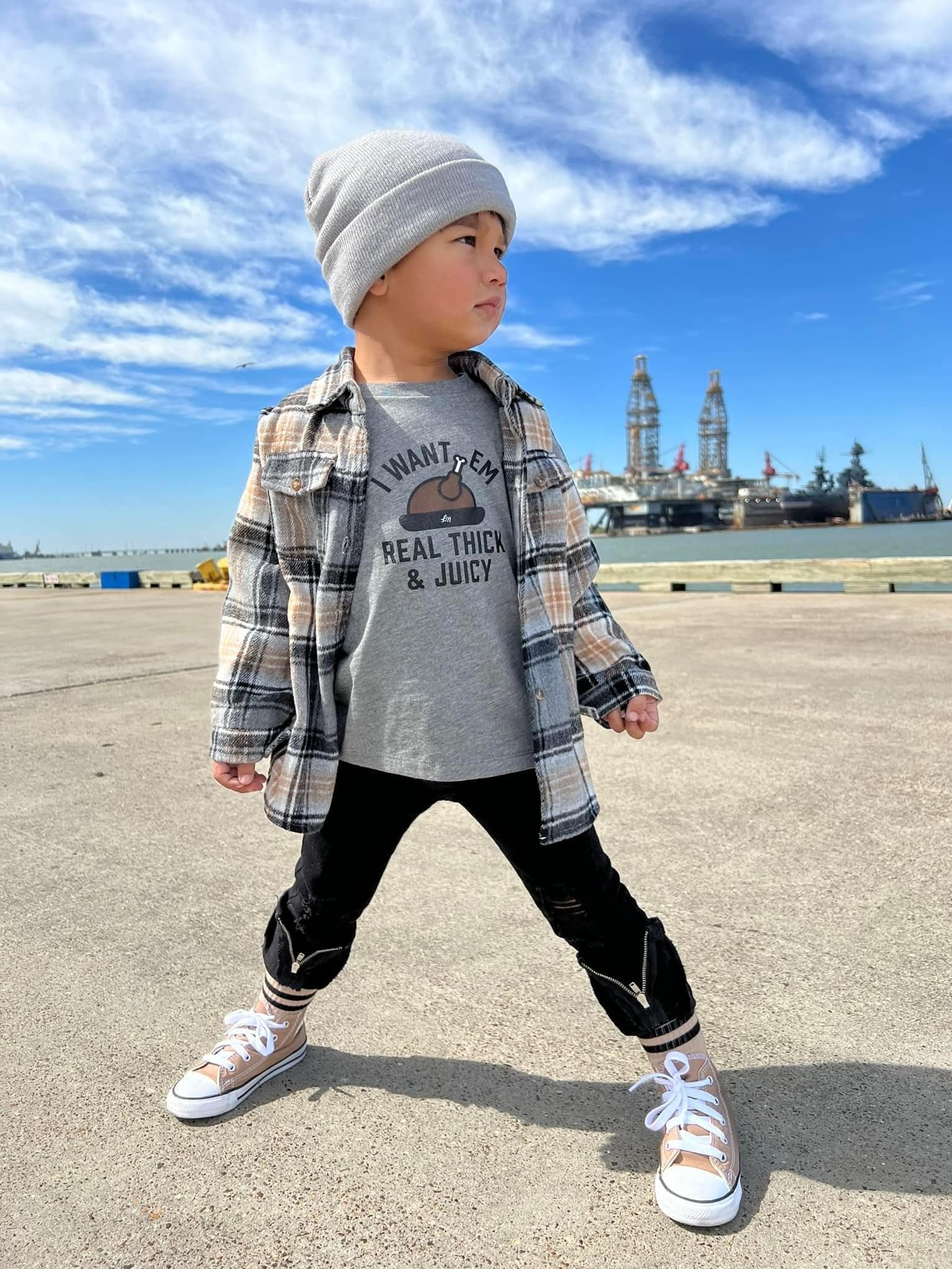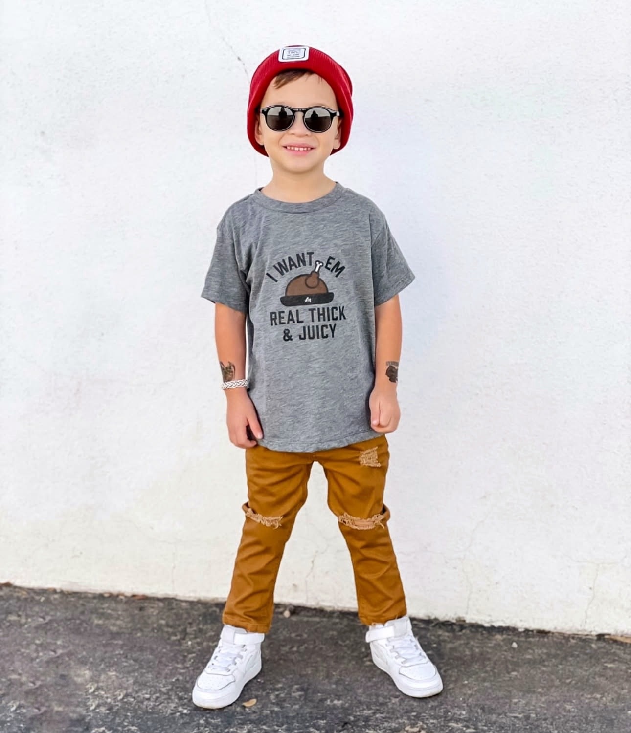 Let your little ones show their love for Turkey & Thanksgiving with this new exclusively designed kids 'I want 'em real thick & juicy' tee from Ledger Nash Co.