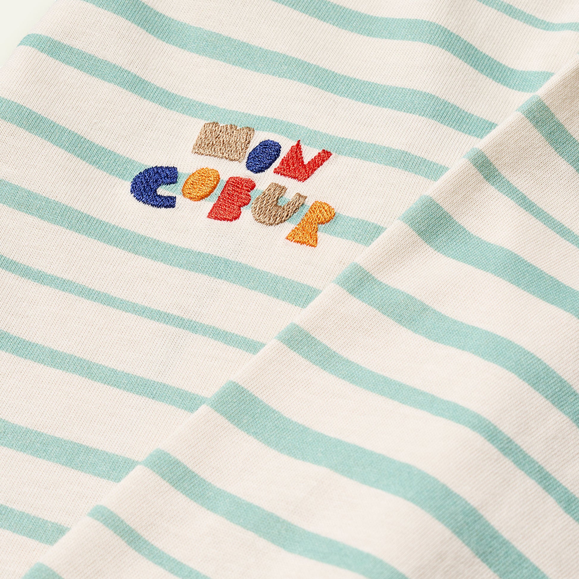 The classic breton tee gets a modern update — made for every kid and every adventure. In soft surf blue-and-white stripes and an embroidered Mon Coeur detail, it’s a nod to classic style with a unisex fit that’s made for play. Crafted from soft recycled and organic cotton, it's a wardrobe staple you’ll reach for again and again.