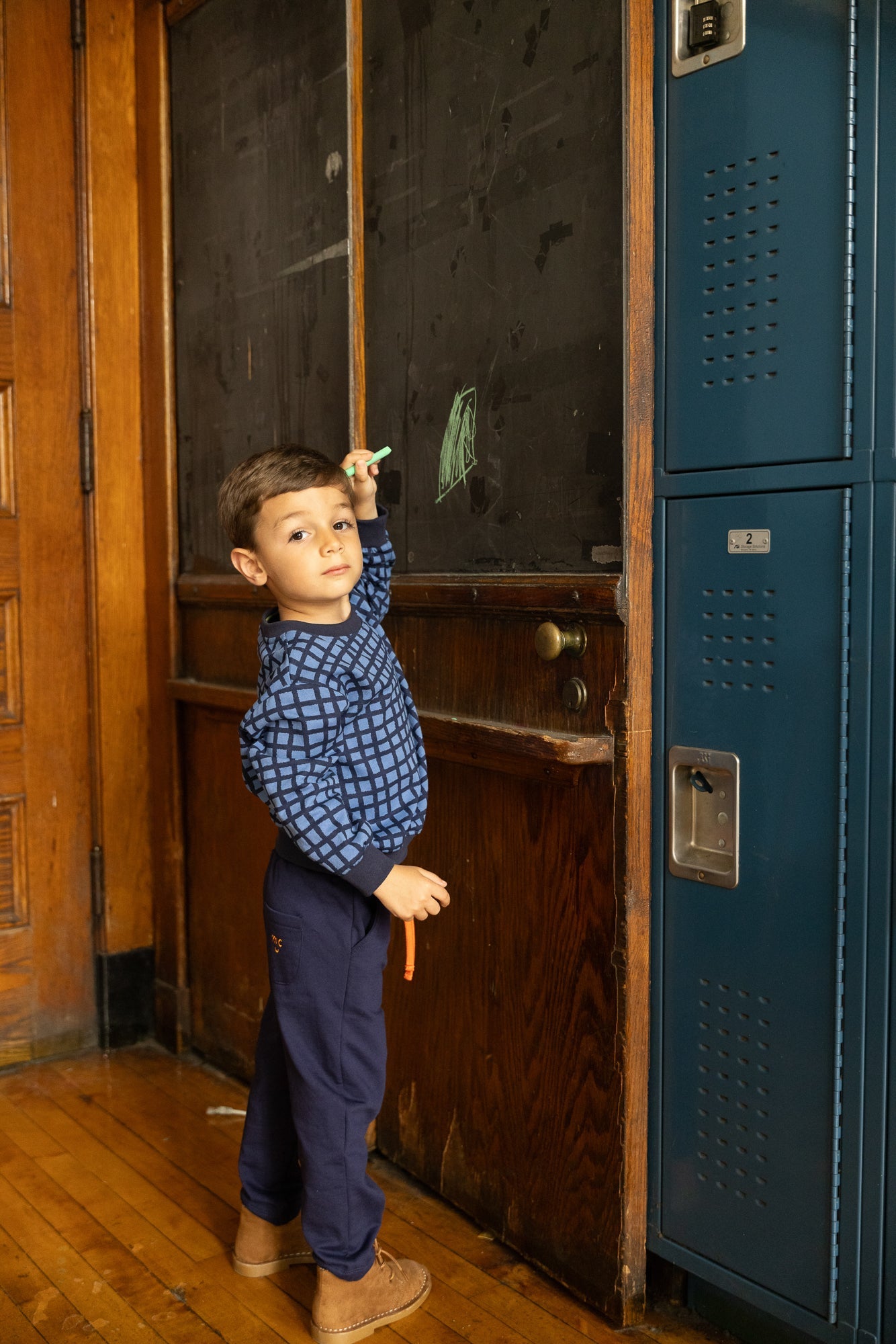 For school days, play dates, and everything in between — our Recycled Cotton Navy Jogger is the comfy go-to they’ll never want to take off. Made from recycled cotton and organic cotton and an orange drawstring for a pop of color. It’s an everyday essential that mixes and matches effortlessly with the rest of the collection. Size up for a more relaxed fit