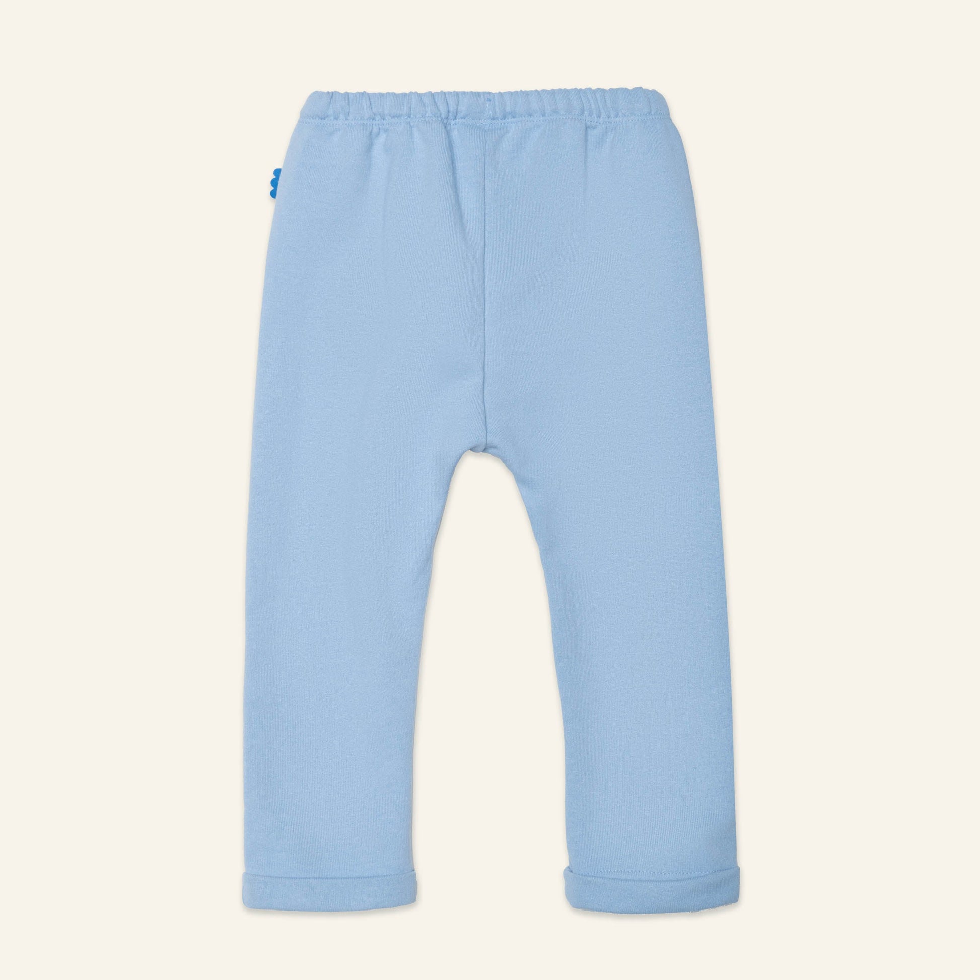 The Recycled Cotton Sailboat baby joggers are perfect for even the tiniest adventurer! These harem pants in placid blue are adorable and designed to pair seamlessly with one of our sailboat t-shirts for a stylish and comfortable ensemble. The soft knee patches are crafted from recycled plastic bottles and are perfect for crawlers and little ones learning to walk. The adjustable contrast drawstring adds color and practicality. For each purchase 1% of the sales goes to the restoration of the natural environment through our commitment with 1% for the Planet. Made in Portugal.