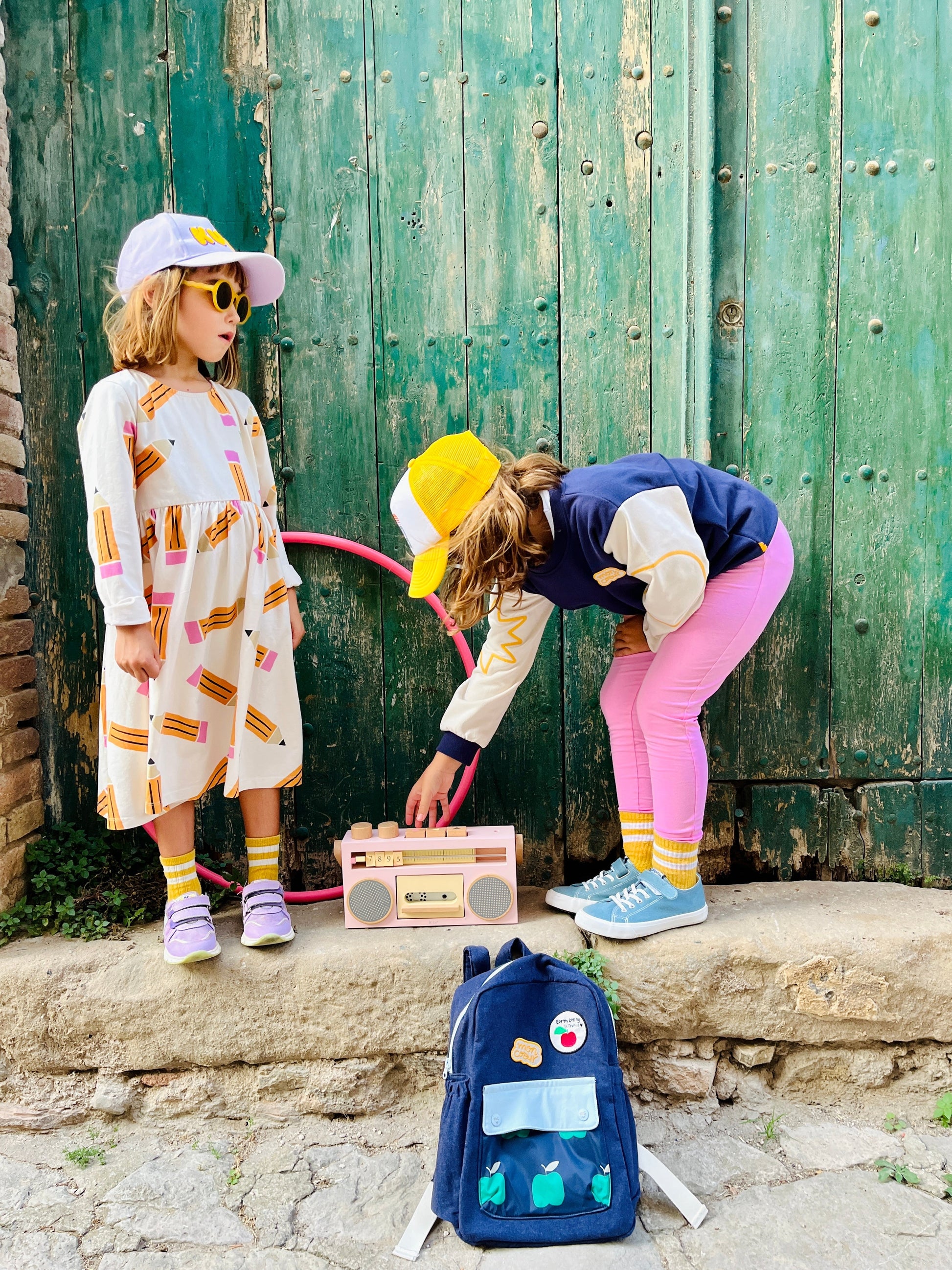 Navy backpack with our signature Mon Coeur patched, made from recycled and organic cotton. Designed with a contrast zipper closure, padded straps that are adjustable with buckles, a carrying handle, side compartments, and a large exterior pocket with snap closures. Contrast lining with piped seams. With love sewn into every stitch, it's proudly made in Portugal to ensure the highest quality and care. 1% of the sale goes towards restoring the natural environment, so you can feel good knowing that your little one's joy is helping Mother Nature bloom.