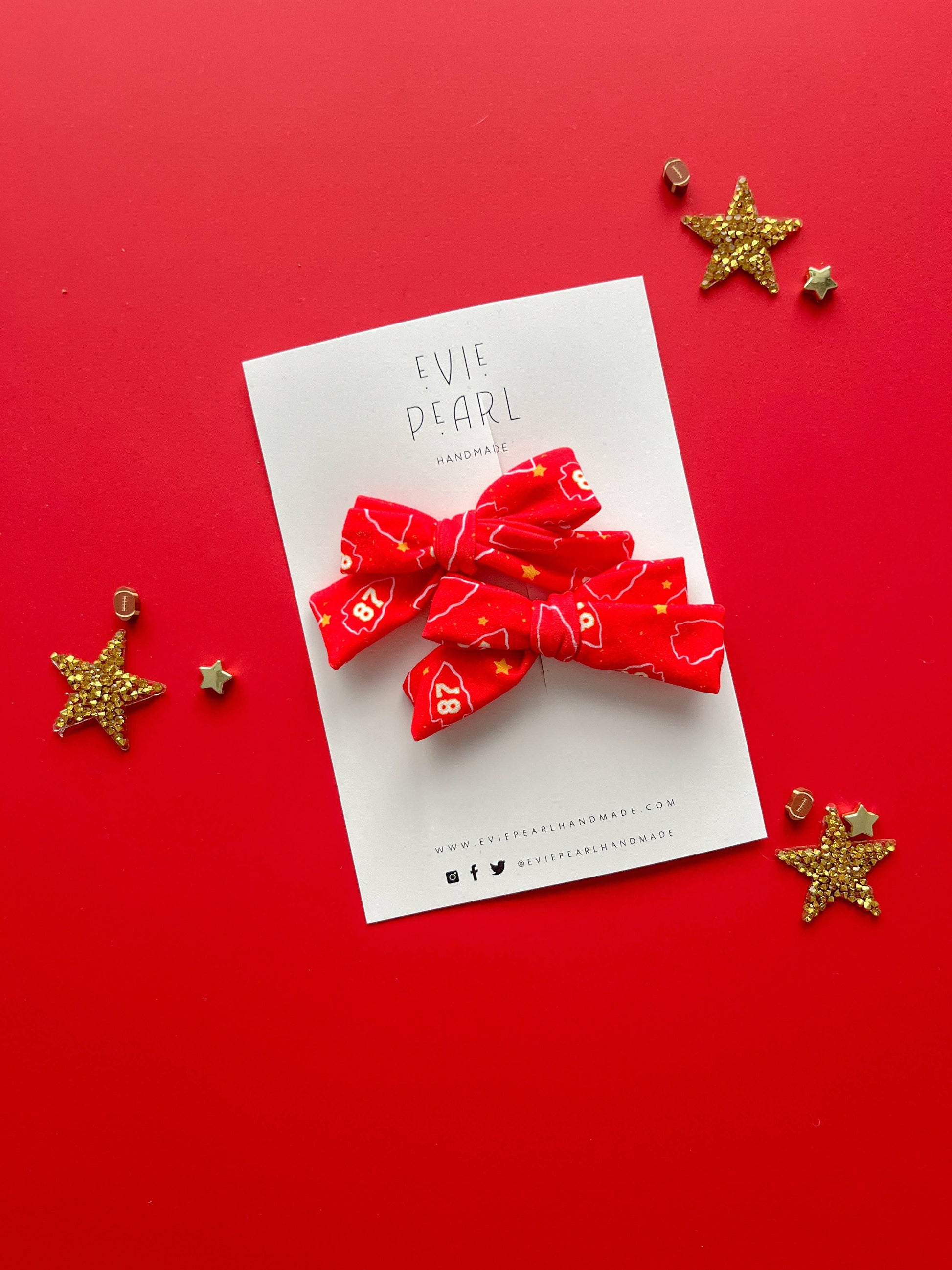 Oversized Bow: 5x6 inches. Comes on large Alligator clip.