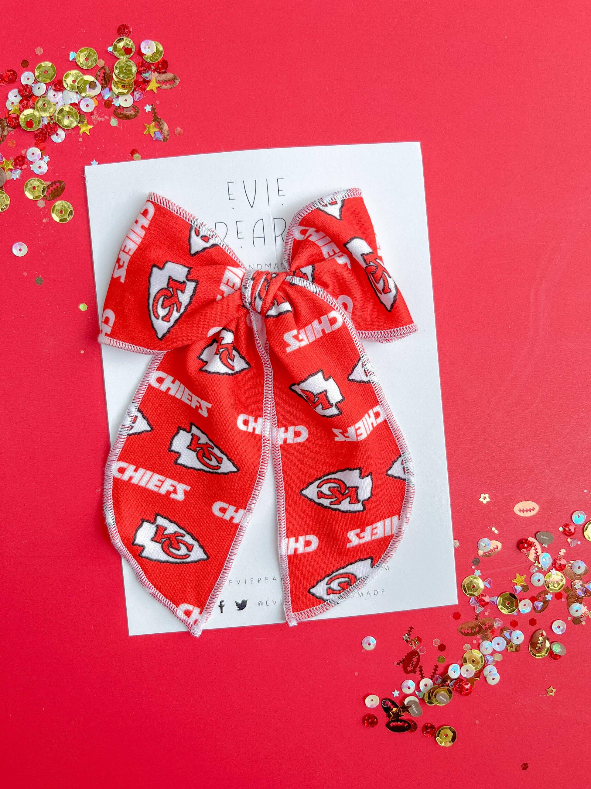 Cheer on the Kansas City Chiefs in style with this gold and yellow game day bow! Handmade with high-quality fabric, this bow is the perfect accessory for little girls, toddlers, or teens to wear on game days, tailgates, or school spirit events. Designed on a sturdy alligator clip, it grips hair securely without slipping—great for ponytails, pigtails, or half-up styles. Whether you’re headed to Arrowhead Stadium or cheering from home, this Chiefs-inspired bow adds the perfect touch of team spirit for your mini fan.