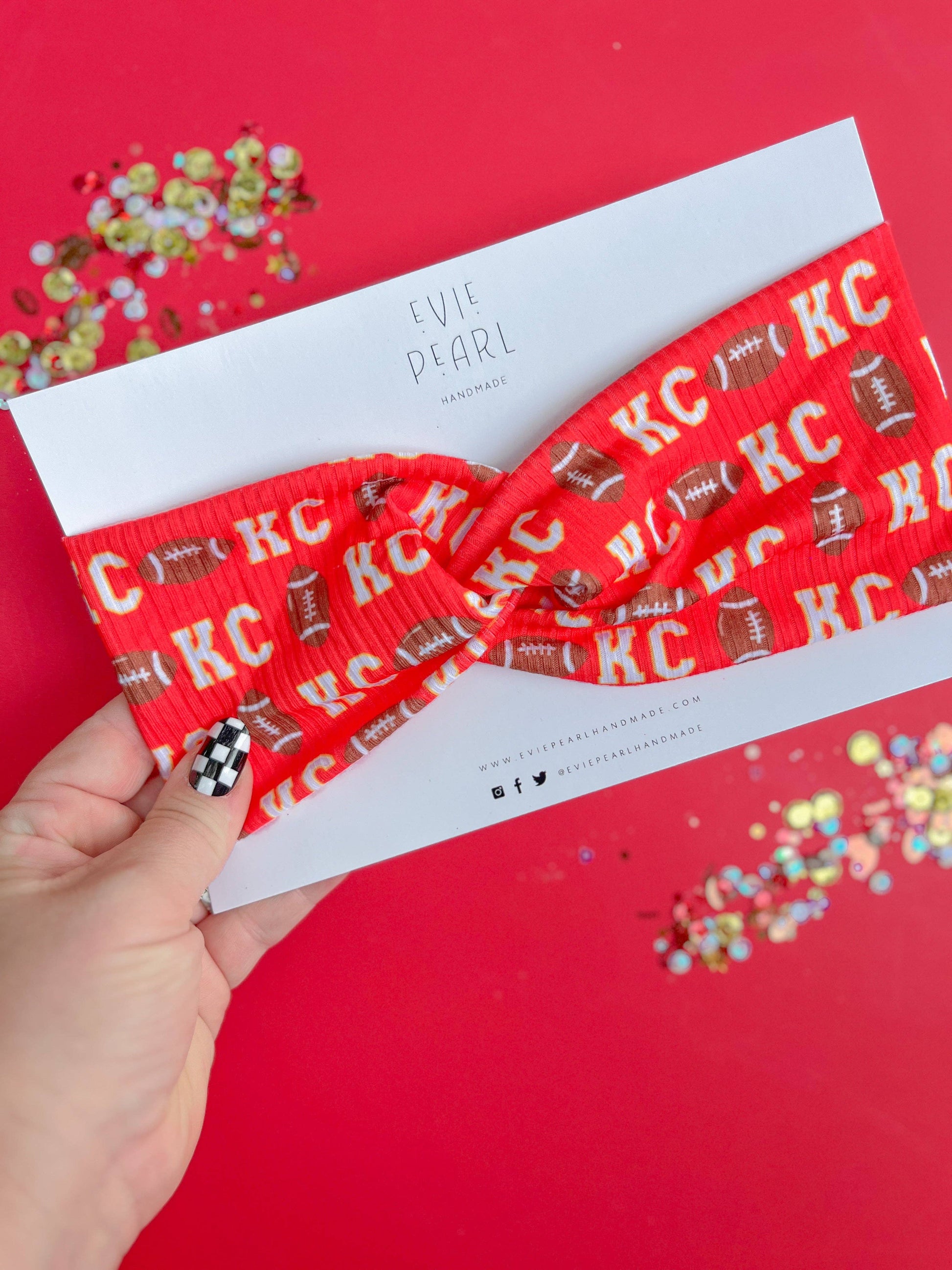 The Red KC Football Twisted Turban from Evie Pearl Handmade LLC is a testament to the brand's commitment to quality and style. This fashion headband, designed specifically for kids, is a delightful addition to any young football fan's accessory collection. The brand, named after Jenni Shield's daughter, Evie, embodies the spirit of creativity and resilience. Each piece is a labor of love, designed to bring joy and comfort. This twisted turban, with its vibrant red hue and football motif, is more than just an accessory, it's a symbol of the brand's story and growth.