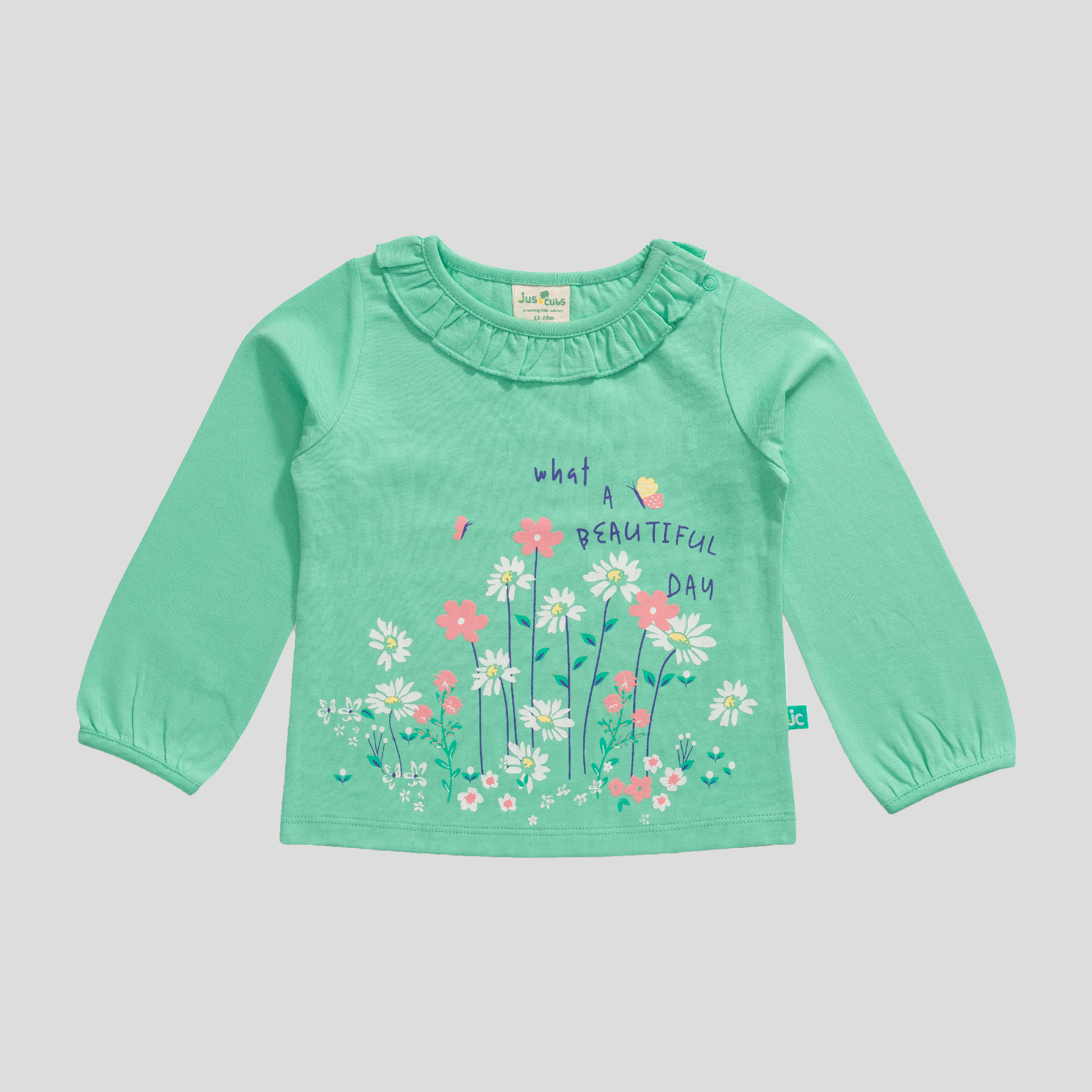 Ruffle Full Sleeve Garden Mint T-Shirt for Toddler Girls