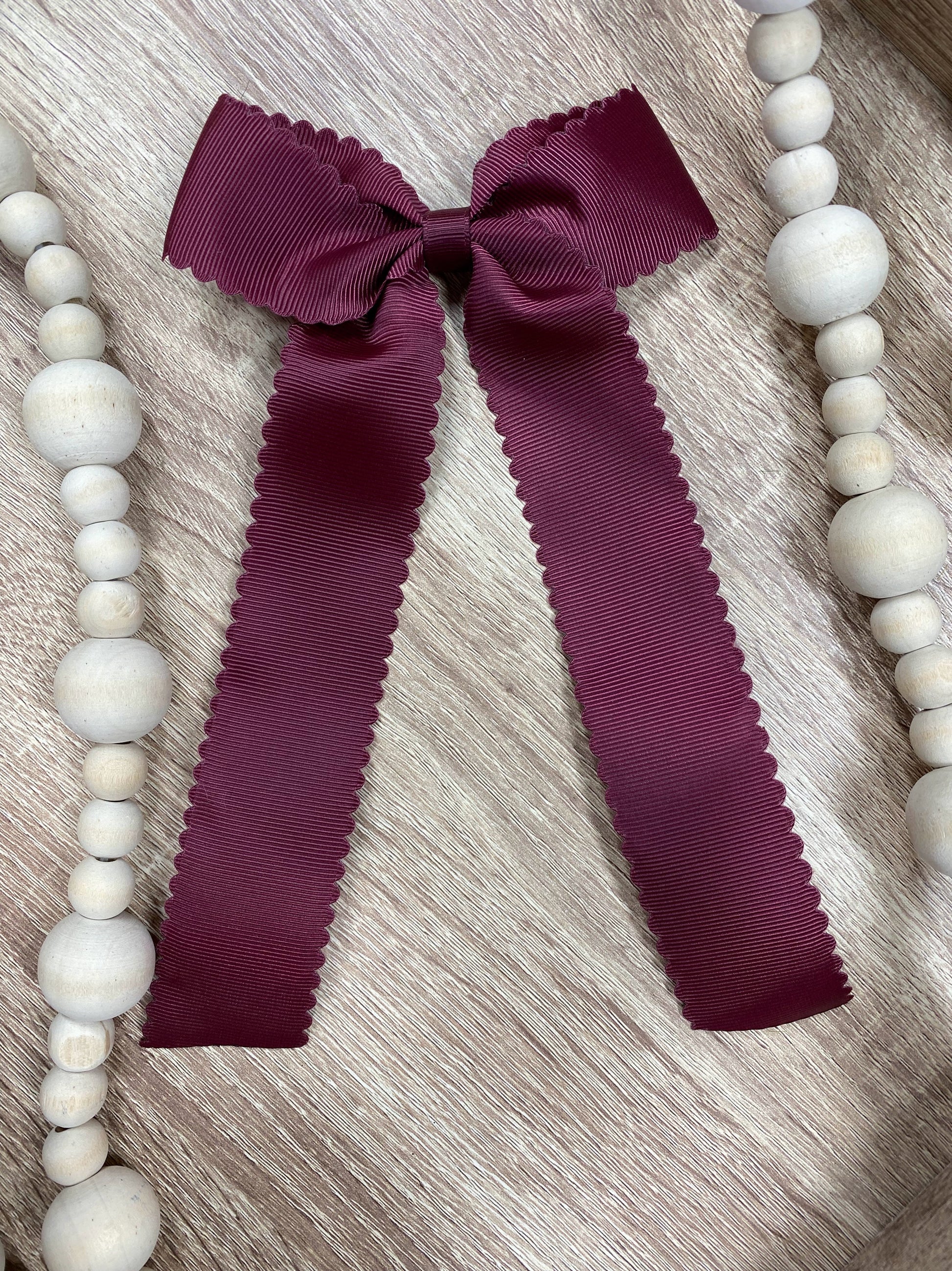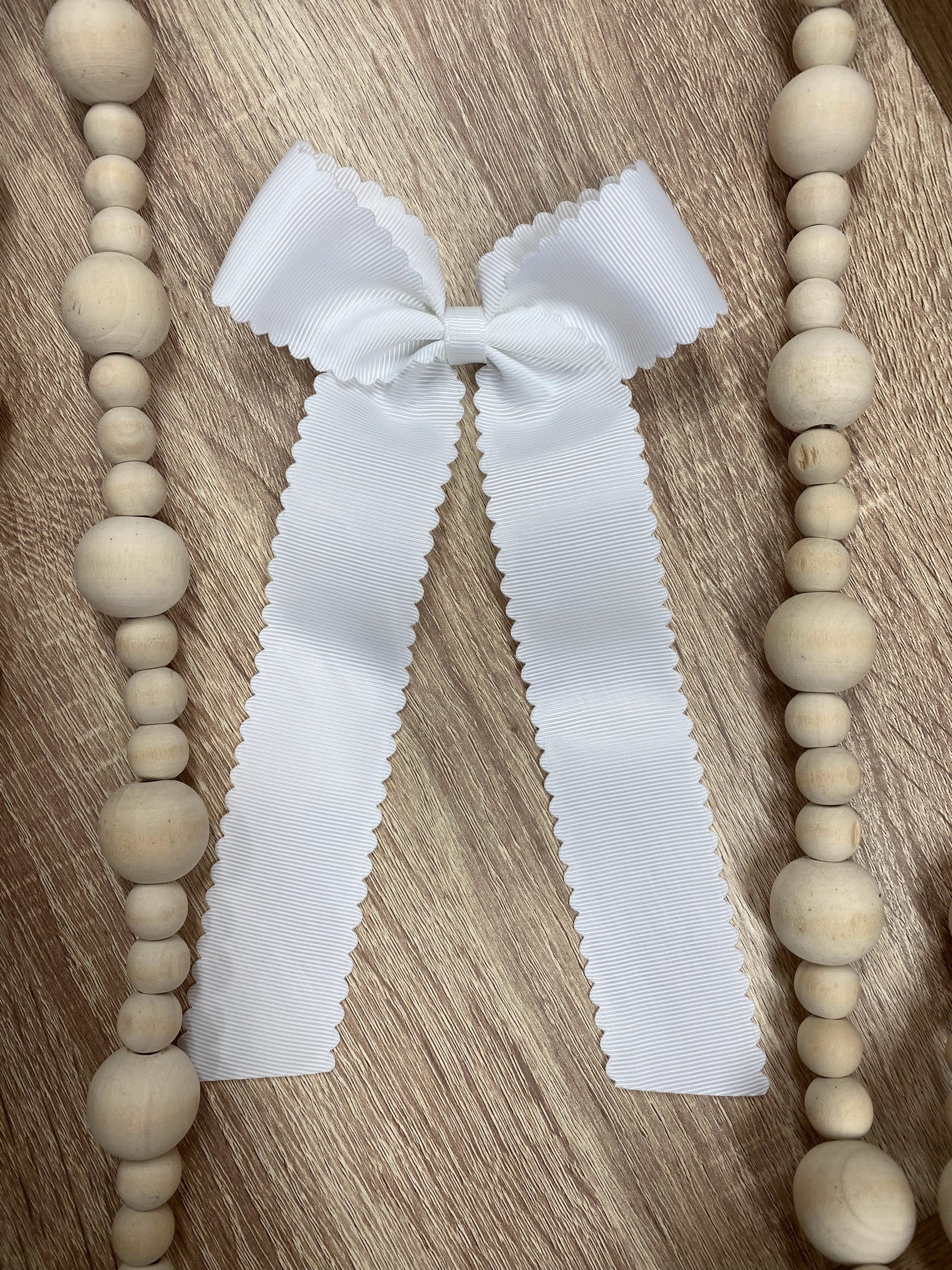 Elevate your hairstyle with the elegance of our Scalloped Long Tail Hair Bow. Order now and experience the beauty and quality of this must-have accessory!